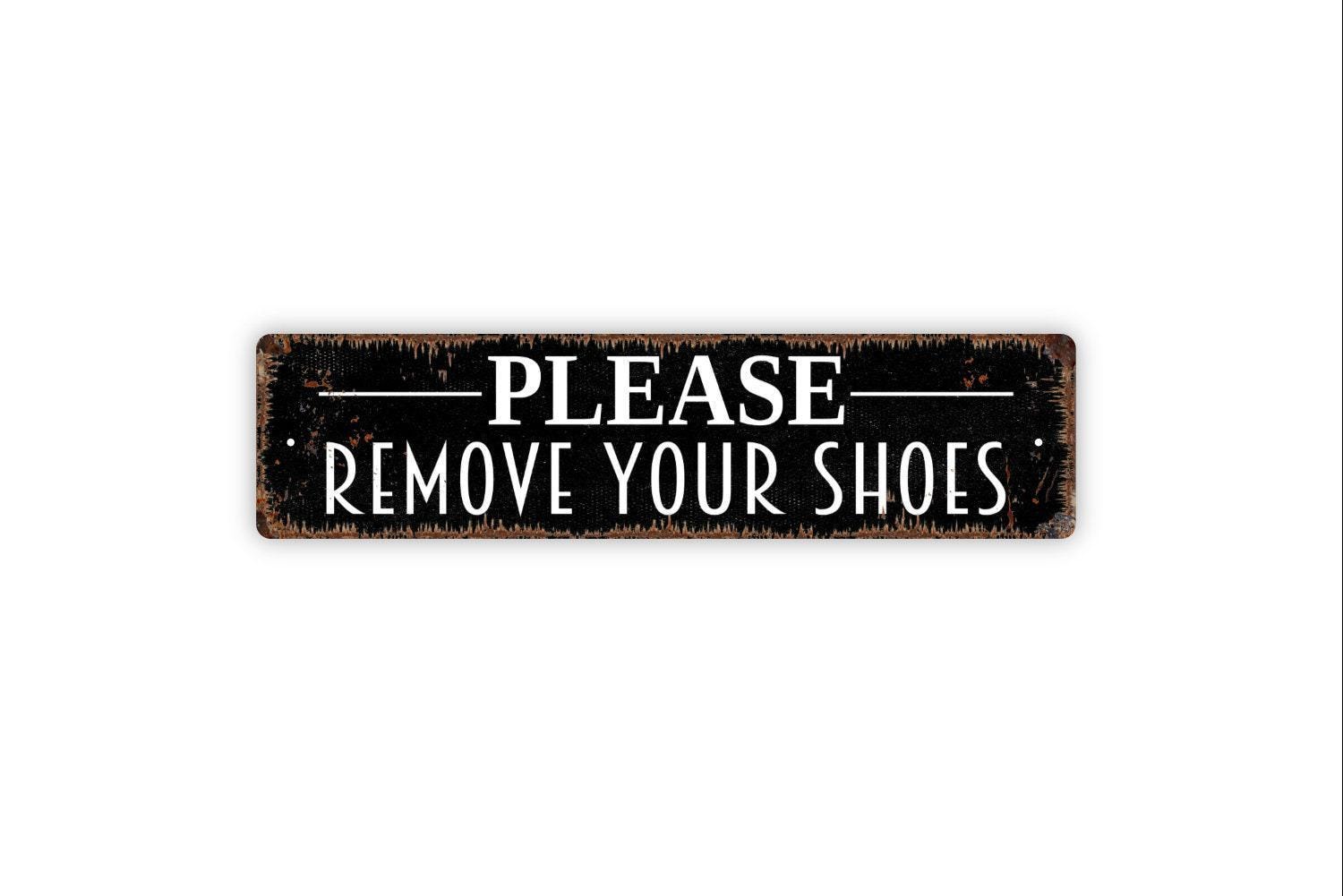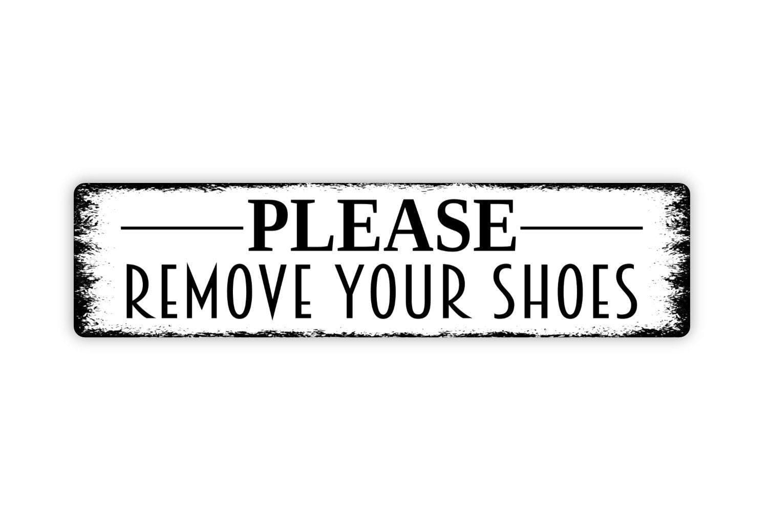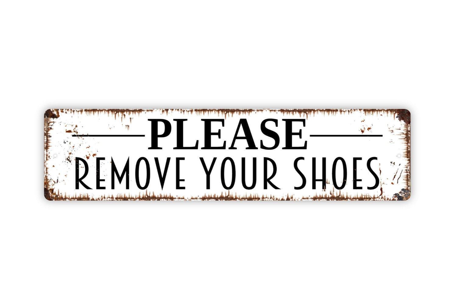 Please Remove Your Shoes Sign - Vinyl Sticker Or Street Sign or Door Name Plate Plaque