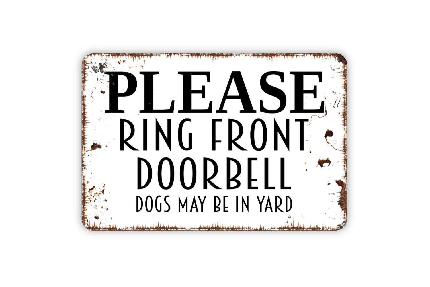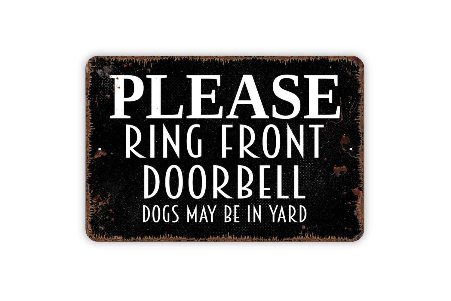 Please Ring Front Doorbell Dogs May Be In Yard Sign | Dog Owner Security Warning Fence Porch Wall Decor | Metal Sign or Vinyl Sticker