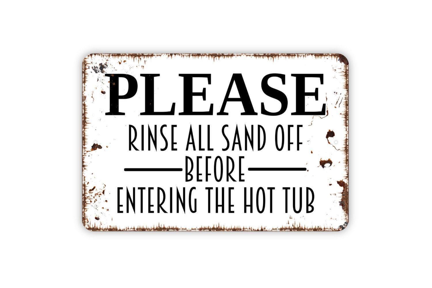 Please Rinse All Sand Off Before Entering The Hot Tub Sign | Rustic Spa or Pool Wall Decor | Custom Metal Sign or Vinyl Sticker