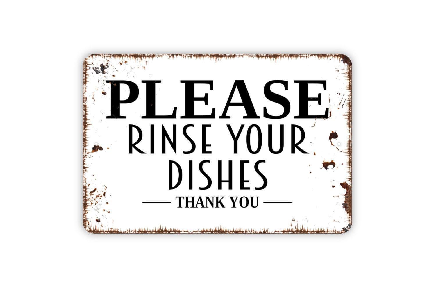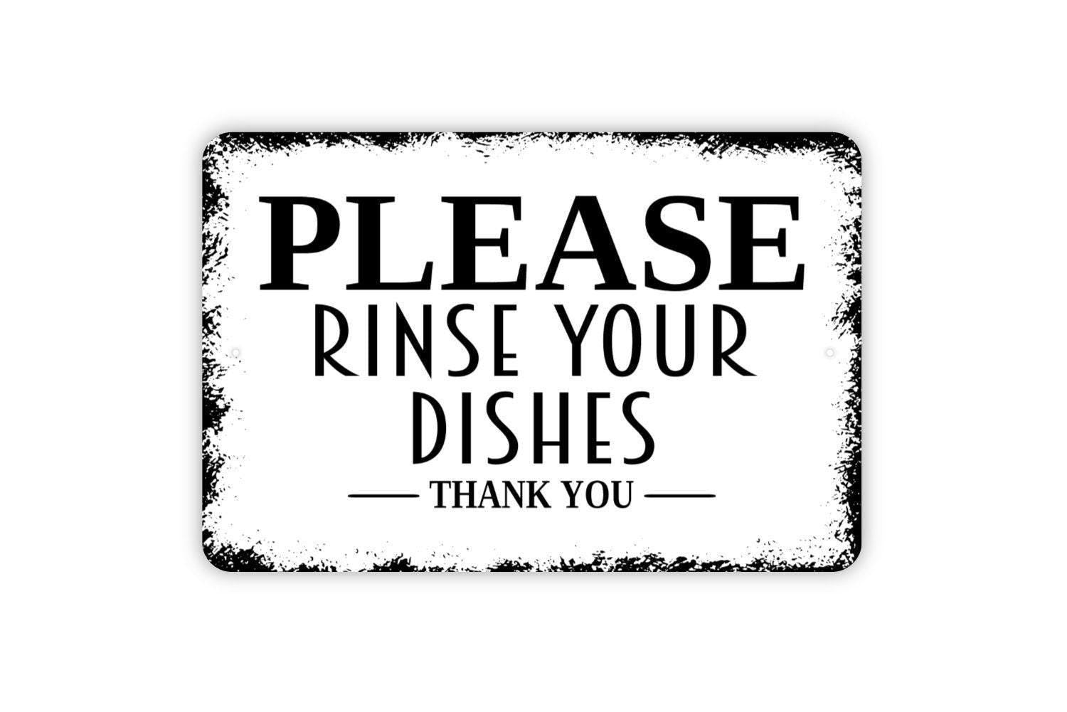 Please Rinse Your Dishes Thank You Sign | Kitchen Sign | Rustic Farmhouse Wall Decor | Metal Sign or Vinyl Sticker | Dishwashing Reminder