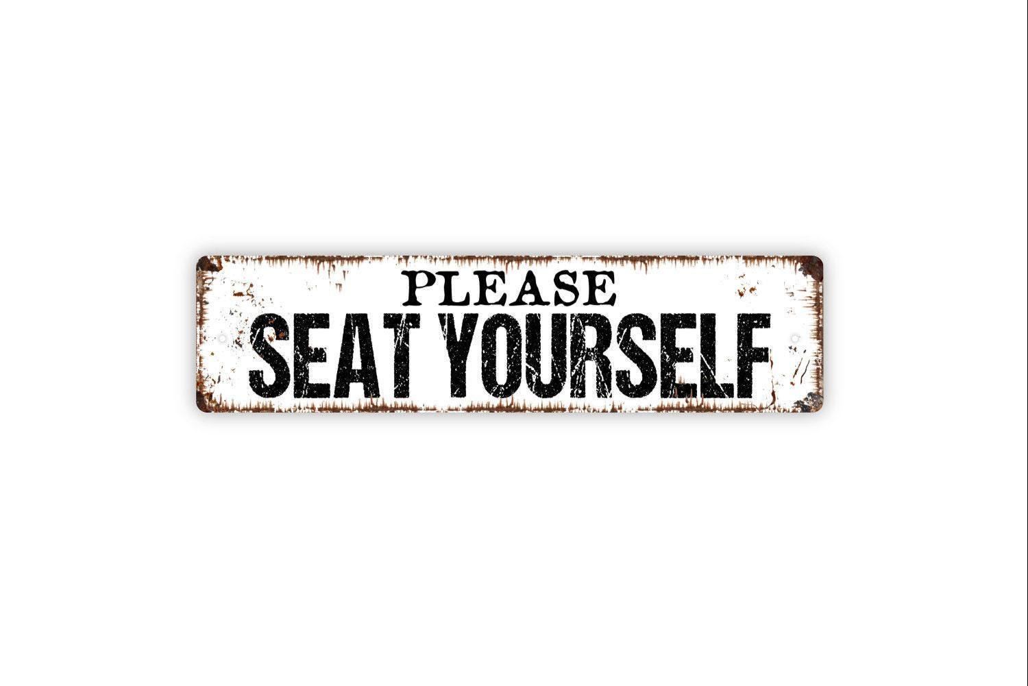 Please Seat Yourself Sign - Restaurant Dinner Table Bathroom Toilet Funny Restroom Rustic Street Metal Sign or Door Name Plate Plaque