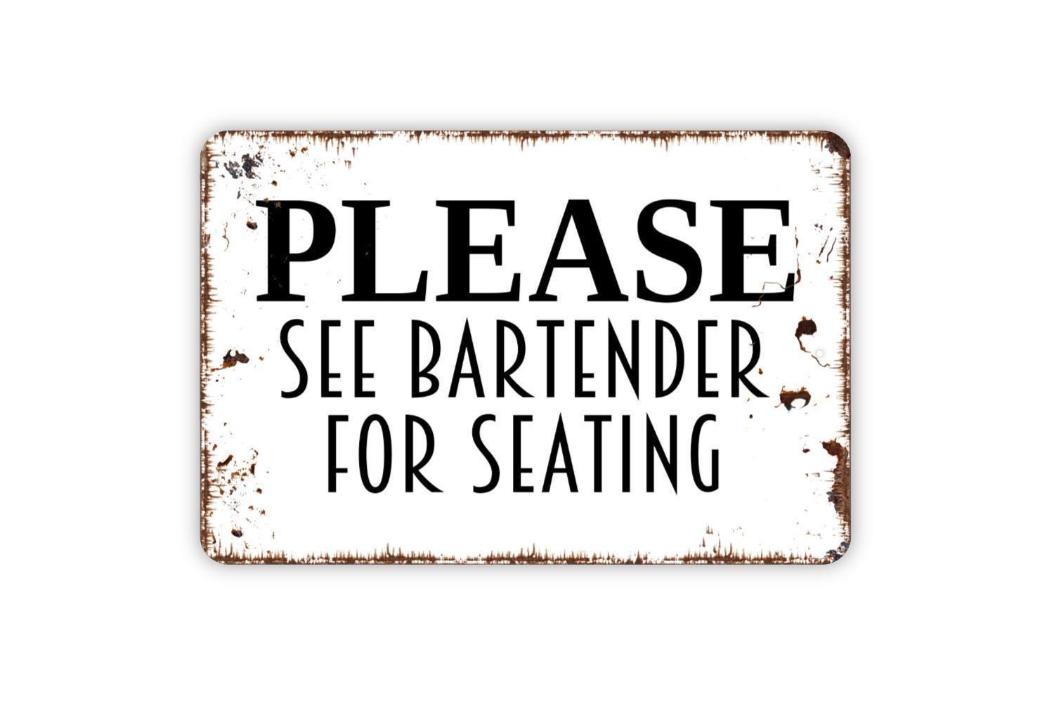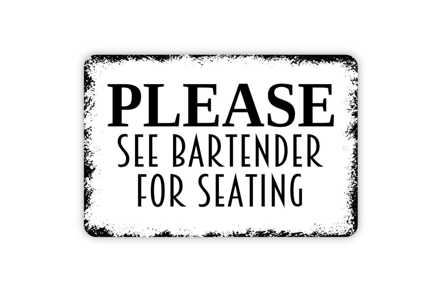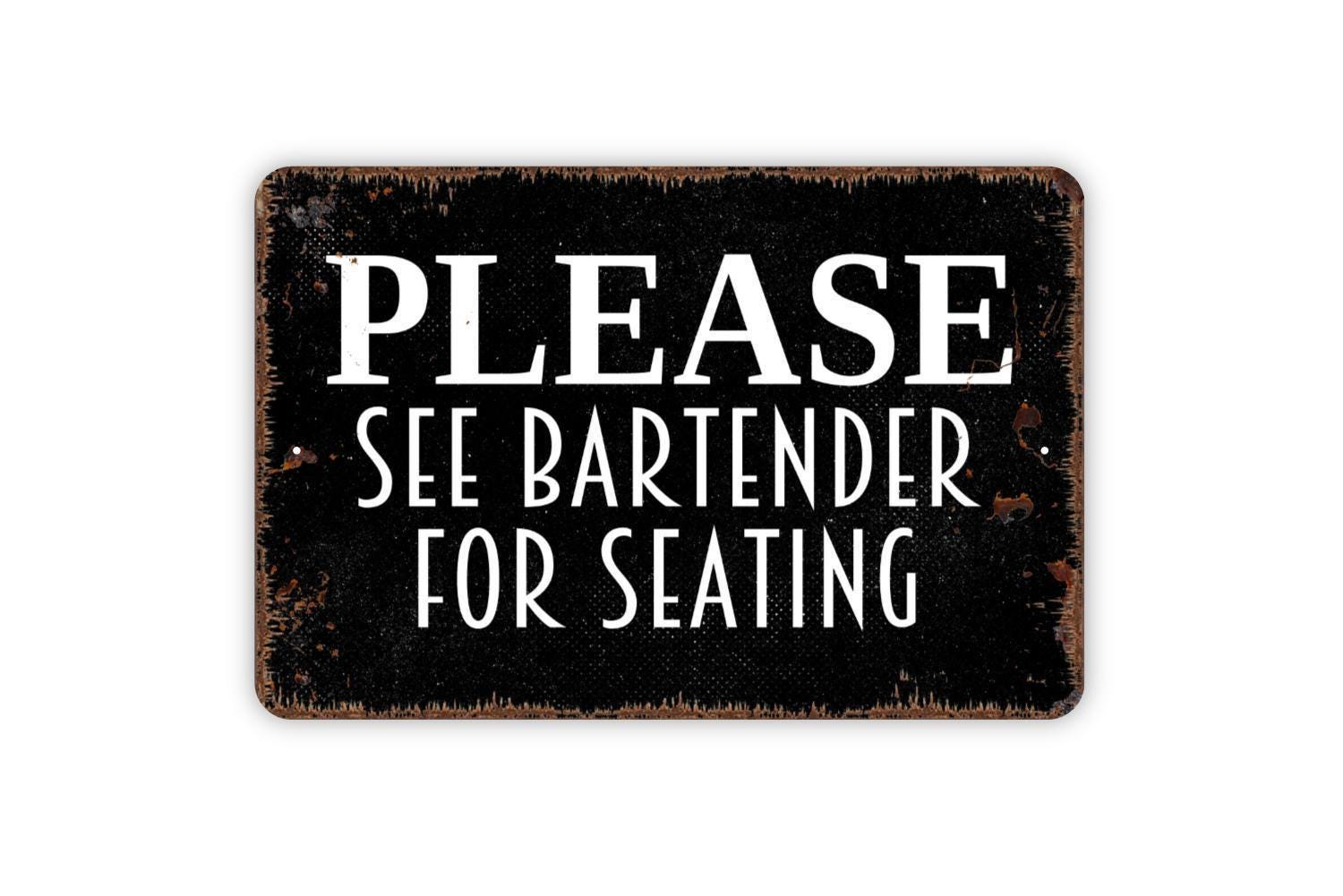 Please See Bartender For Seating Sign - Restaurant Bar Event Venue Metal Indoor or Outdoor Wall Art
