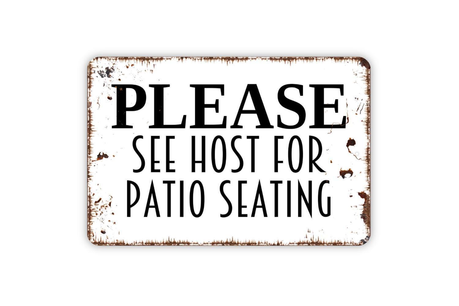 Please See Host For Patio Seating Sign - Host Hostess Restaurant Bar Event Venue Metal Indoor or Outdoor Wall Art