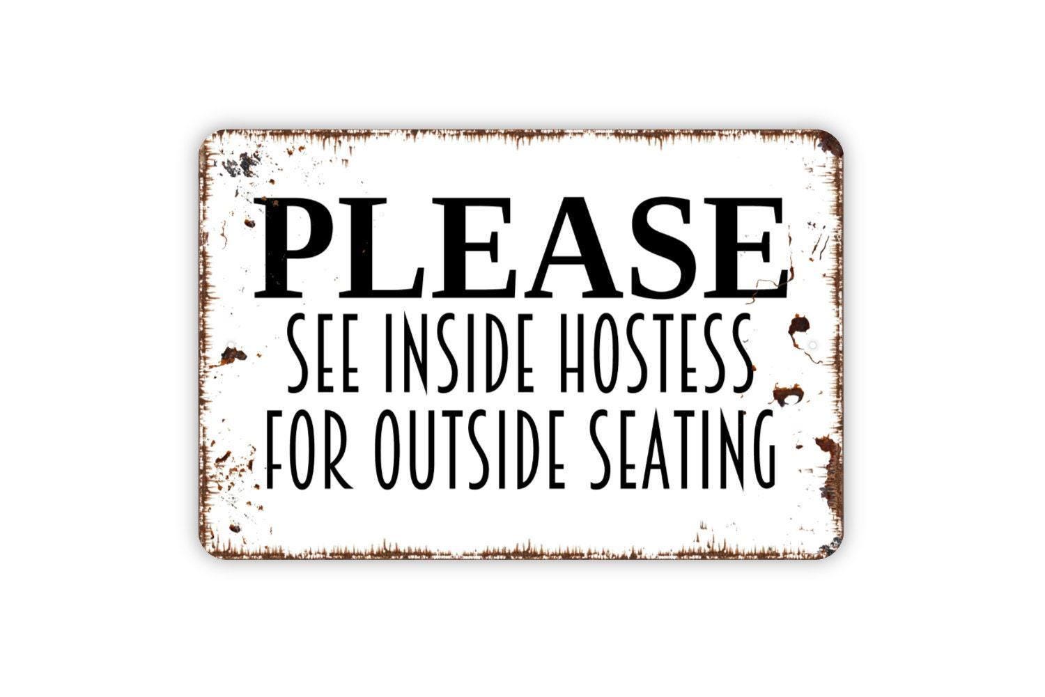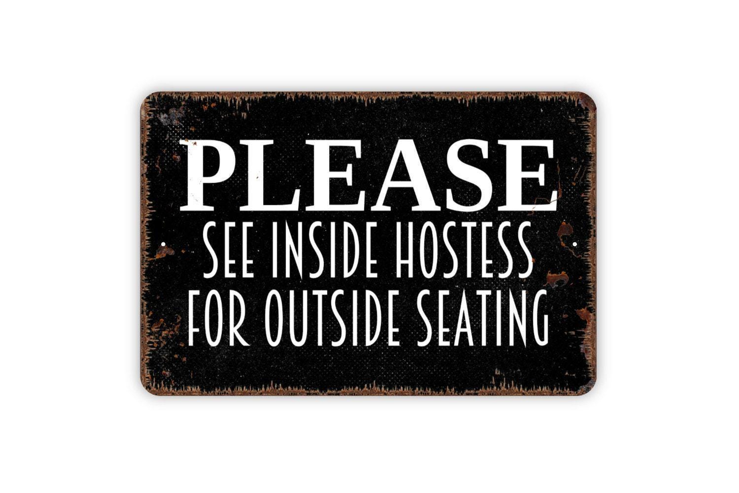 Please See Inside Hostess For Outside Seating Sign - Restaurant Bar Event Venue Metal Indoor or Outdoor Wall Art