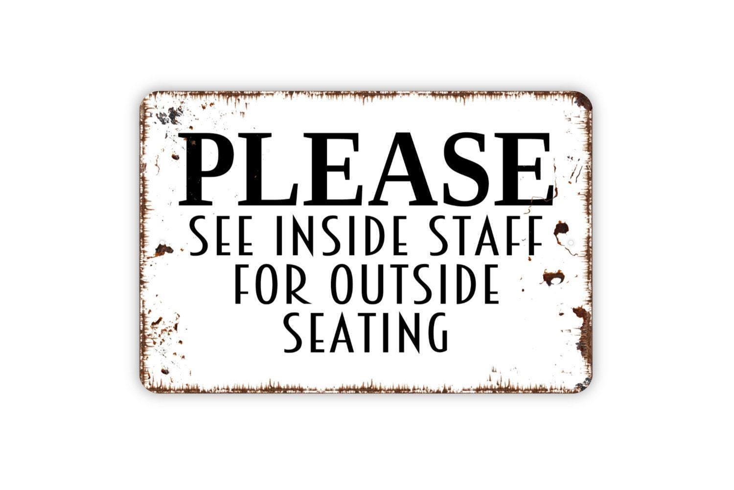 Please See Inside Staff for Outside Seating Sign Metal or Vinyl Sticker | Restaurant Patio Sign | Cafe Direction Sign | Outdoor Dining Decor