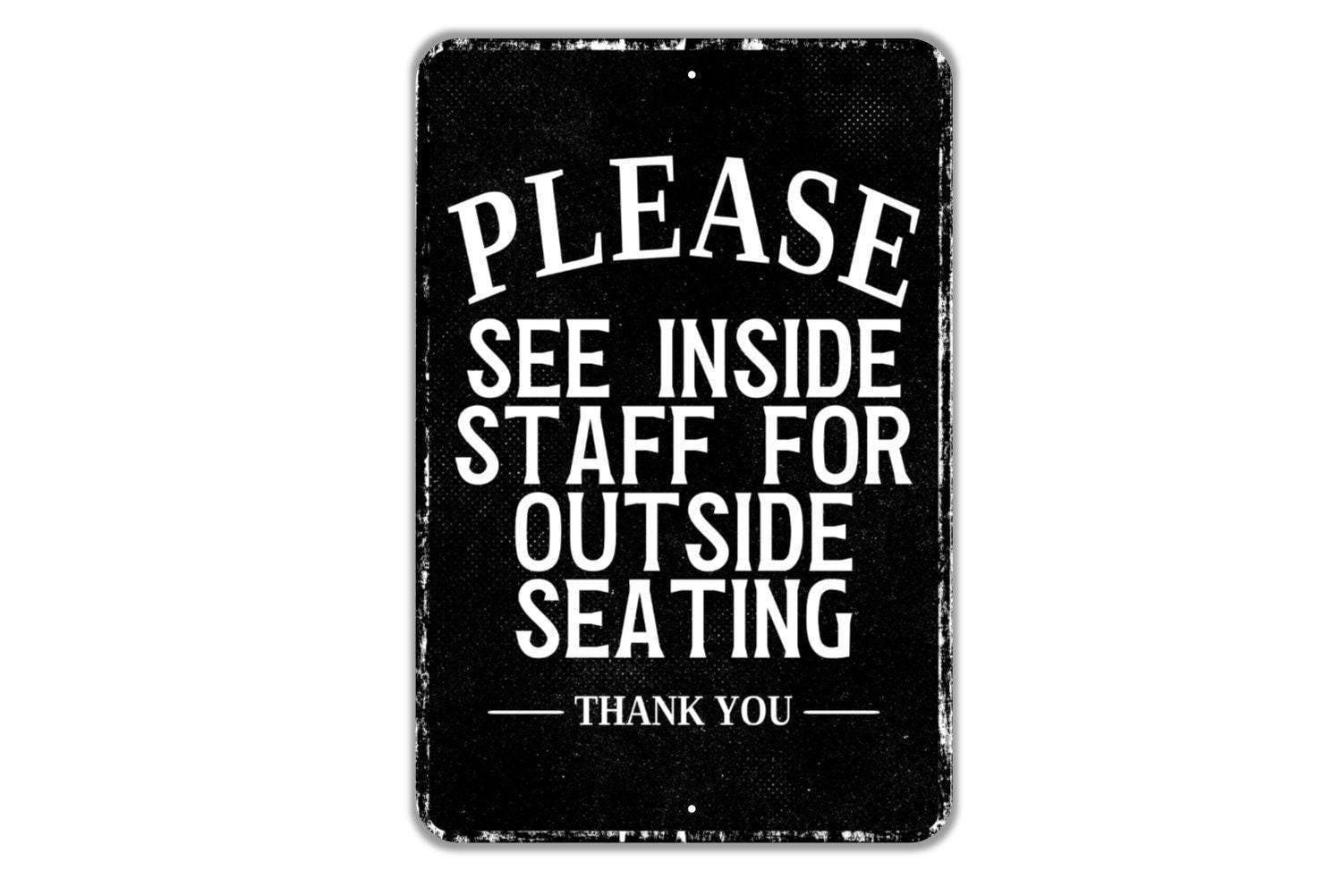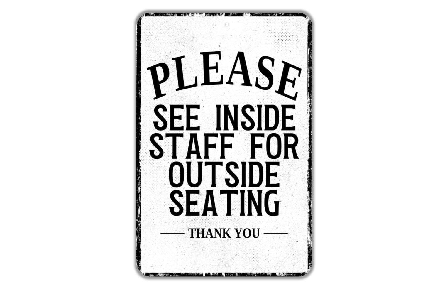 Please See Inside Staff For Outside Seating Thank You Sign | Restaurant Metal Sign or Vinyl Sticker | Cafe, Patio Dining, Hostess Sign