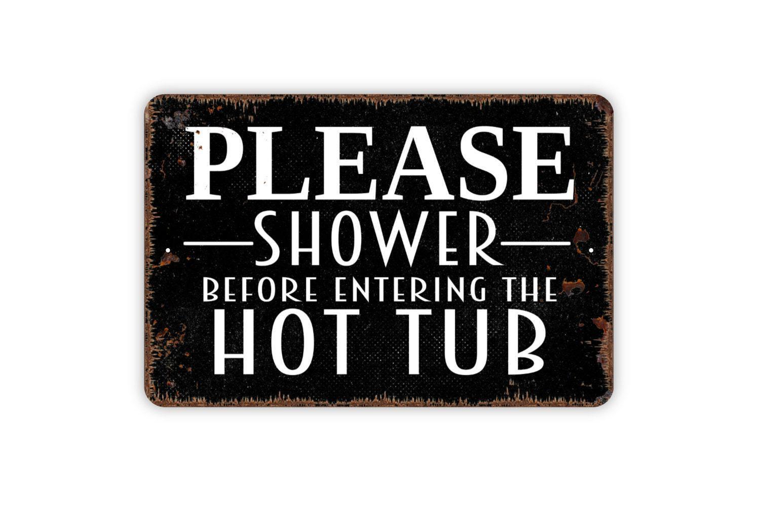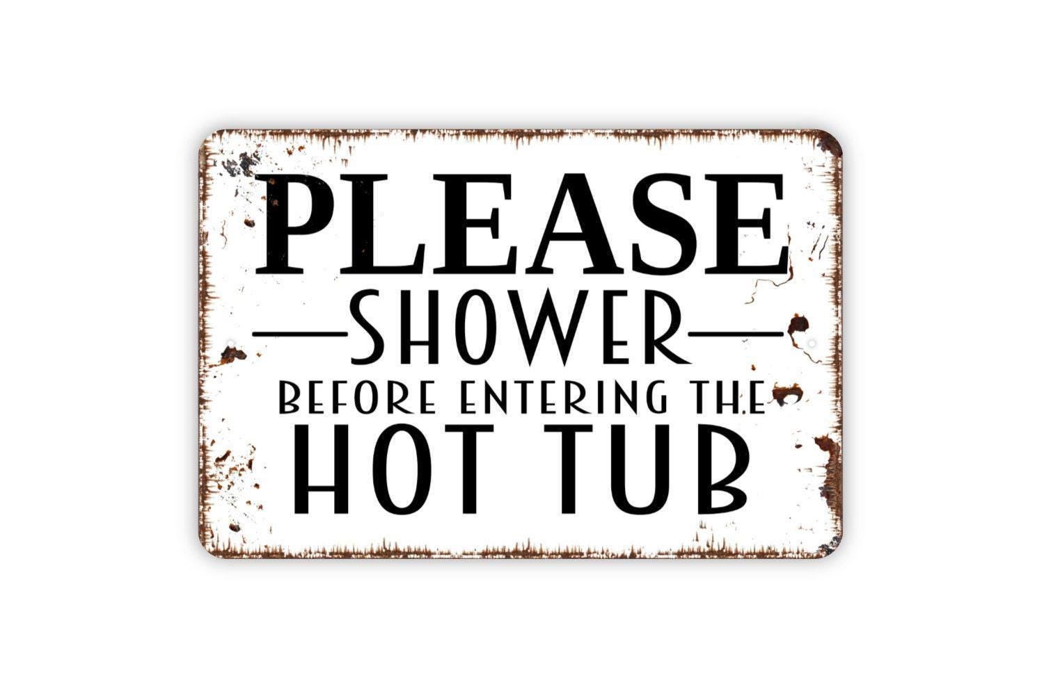 Please Shower Before Entering The Hot Tub Sign – Spa Pool Bathing Reminder Plaque – Backyard Patio Deck Water Safety Metal Sign or Sticker