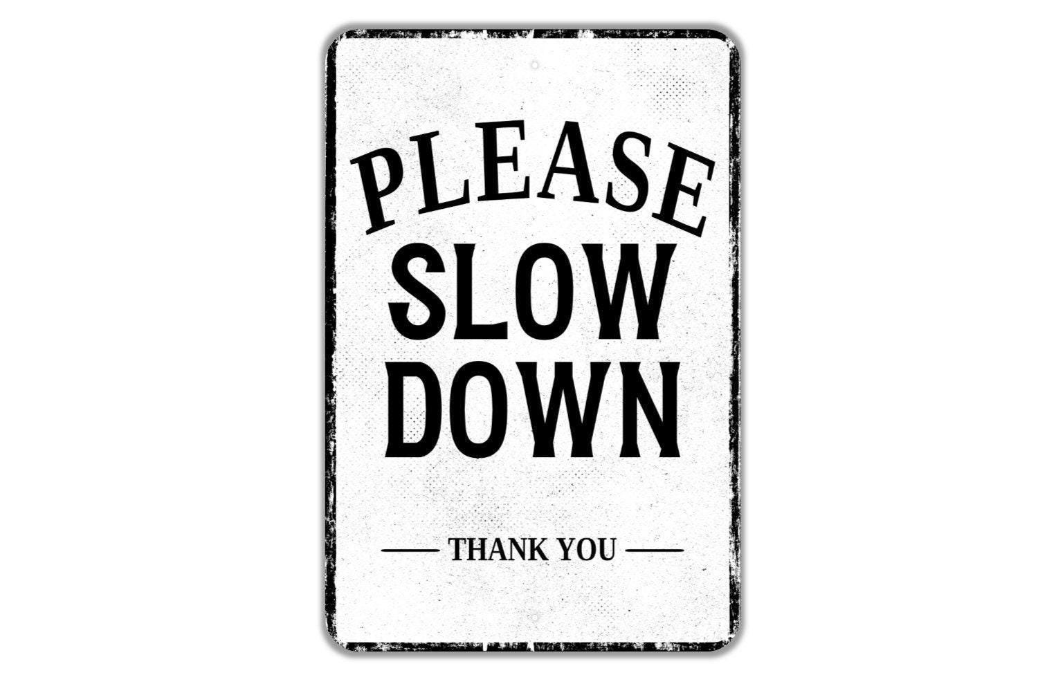 Please Slow Down Thank You Sign | Neighborhood Traffic Safety Sign | Metal Yard Sign or Vinyl Sticker | Driveway Road Street Warning