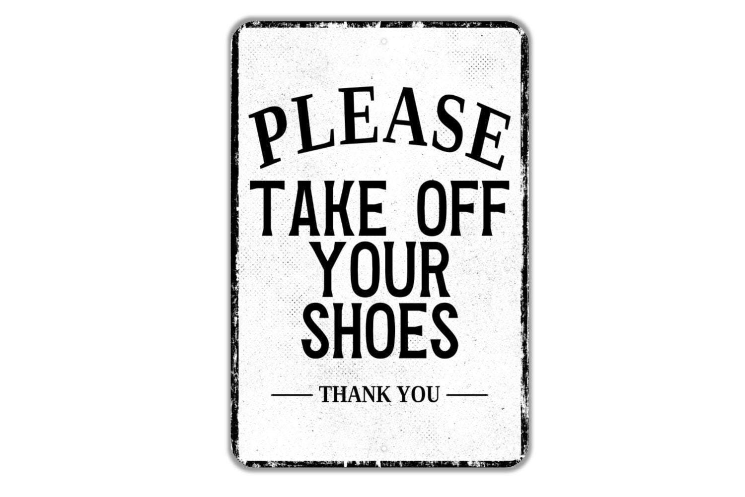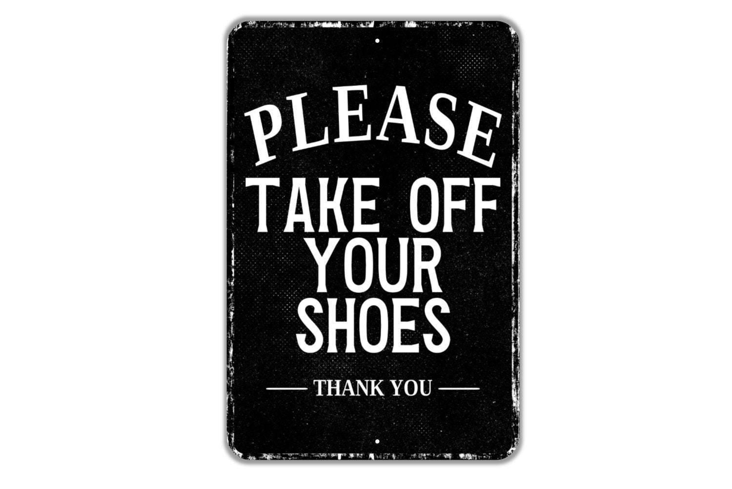 Please Take Off Your Shoes Thank You Sign Metal Wall Art or Vinyl Sticker for Entryway, Porch, Mudroom, Front Door, Home Entry Decor