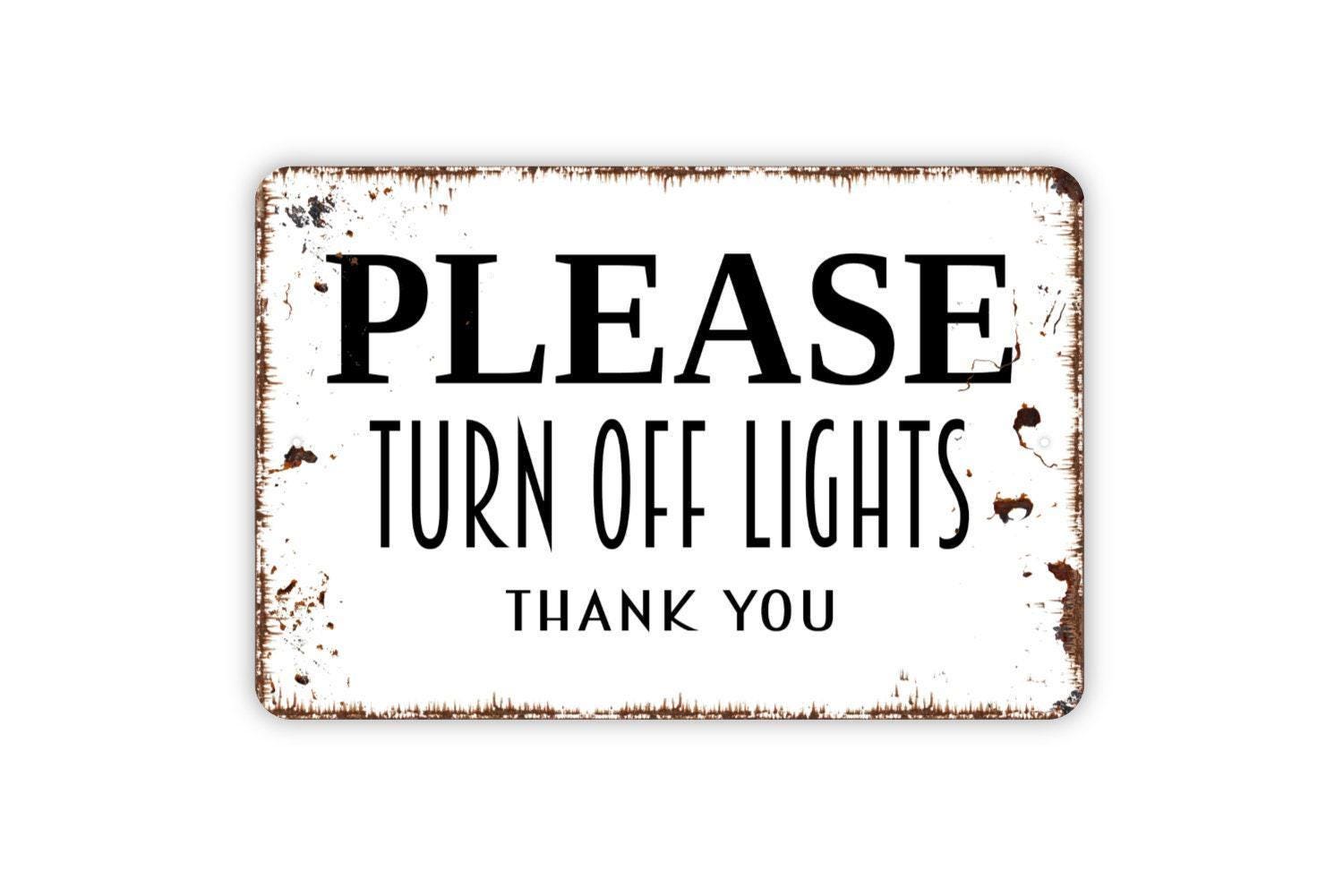 Please Turn Off Lights Thank You Sign - Metal Indoor or Outdoor Wall Art