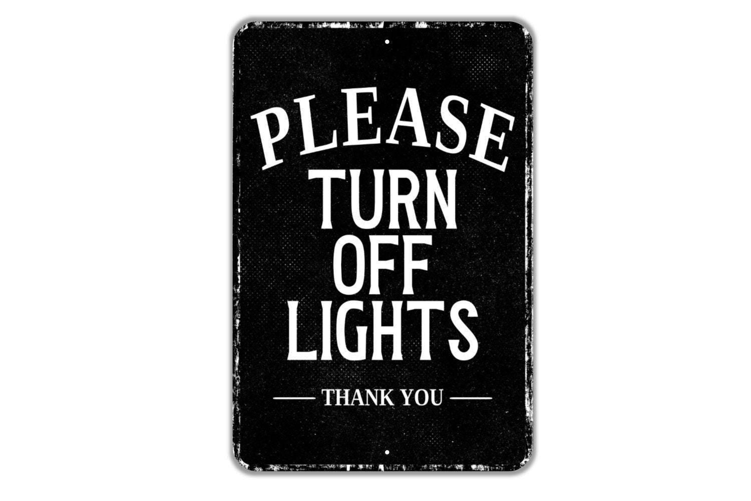 Please Turn Off Lights Thank You Sign Metal Wall Art or Vinyl Sticker for Home, Office, Business, Classroom, Energy Saving Reminder Notice
