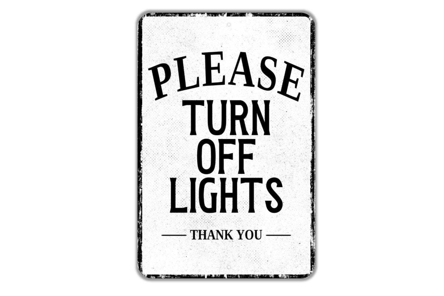 Encourage energy savings with this Please Turn Off Lights Thank You Sign, available in multiple sizes as metal wall art or vinyl stickers. Perfect for homes, offices, classrooms, and businesses, this sign offers a polite reminder to conserve electricity. A practical and eco-friendly choice for any space.