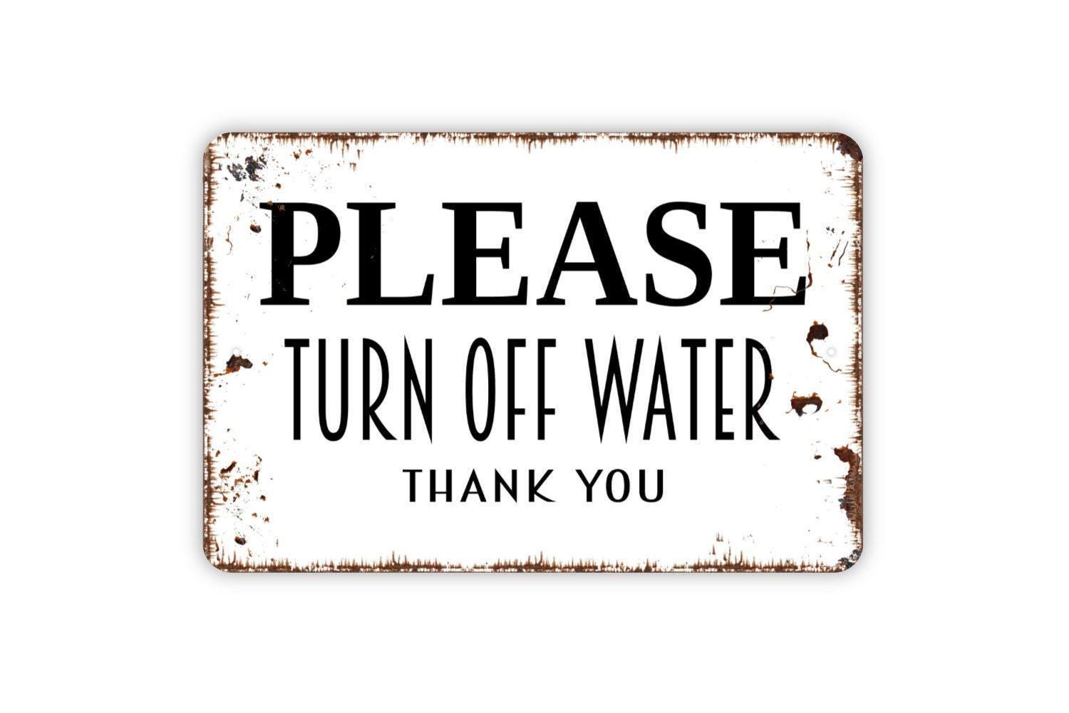 Please Turn Off Water Thank You Sign - Metal Indoor or Outdoor Wall Art