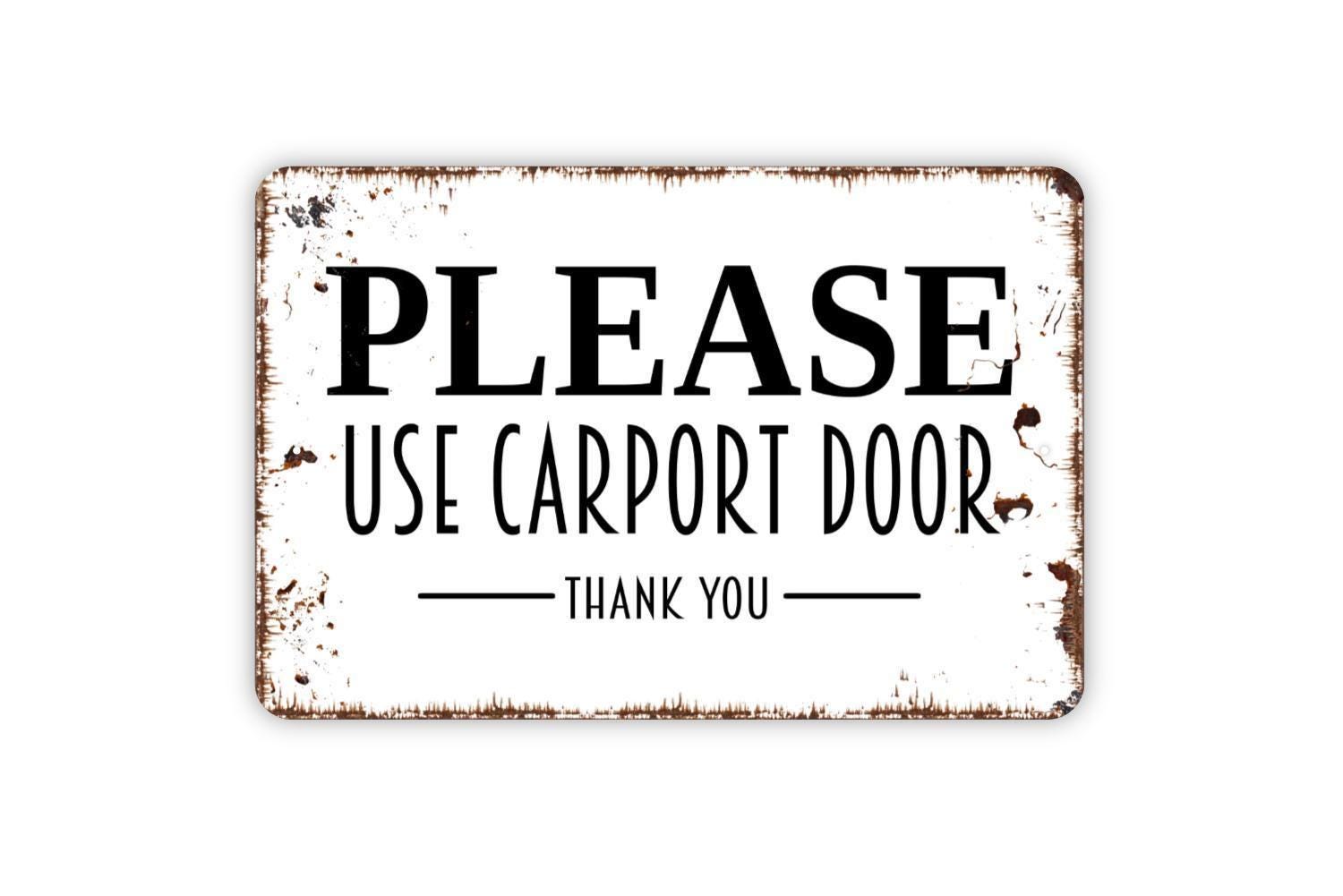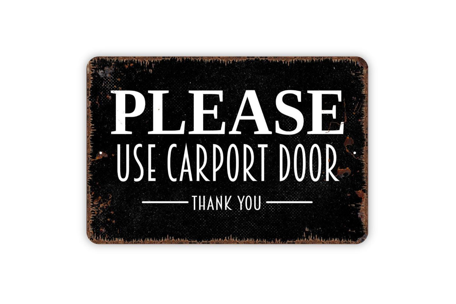 Please Use Carport Door Sign - Metal Indoor or Outdoor Directions Wall Art