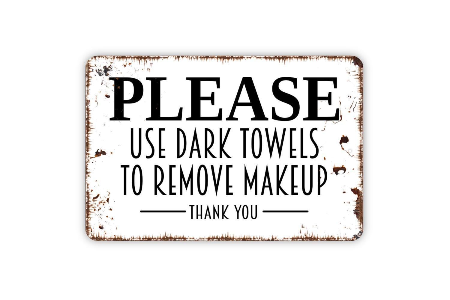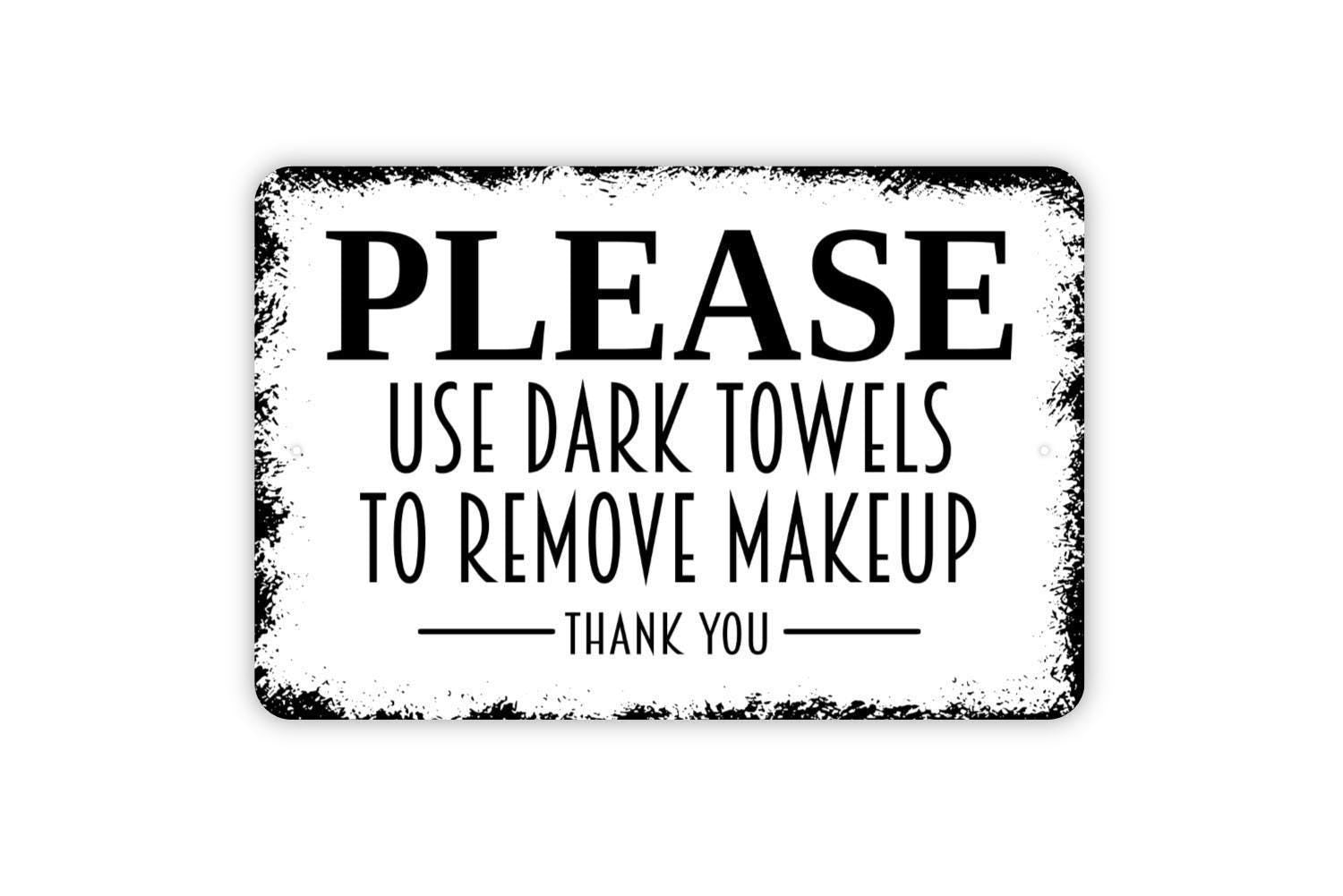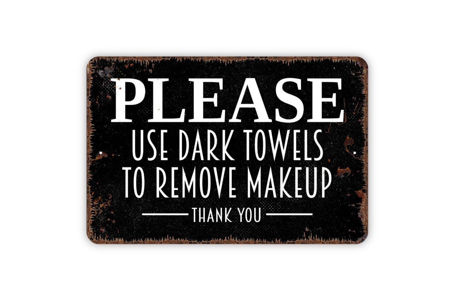 Please Use Dark Towels To Remove Makeup Thank You Sign - Vacation Rental Bathroom Powder Room Metal Indoor or Outdoor Wall Art