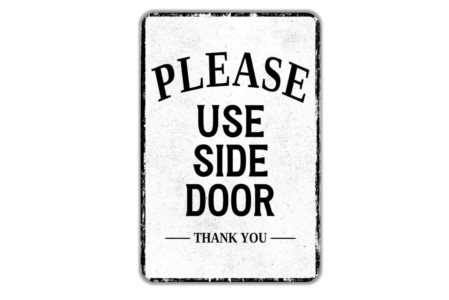 Please Use Side Door Thank You Sign | Entryway Direction Wall Sign | Front Porch Door Decor | Vinyl Sticker or Metal Sign