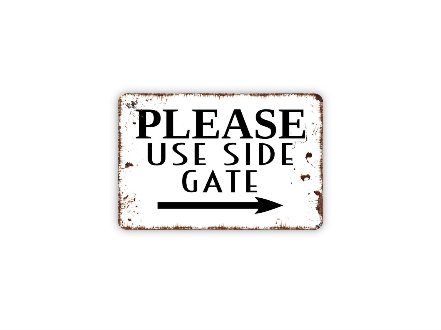Please Use Side Gate With Arrow Sign | Outdoor Entryway Wall Décor for Home or Business | Metal Direction Sign or Vinyl Sticker