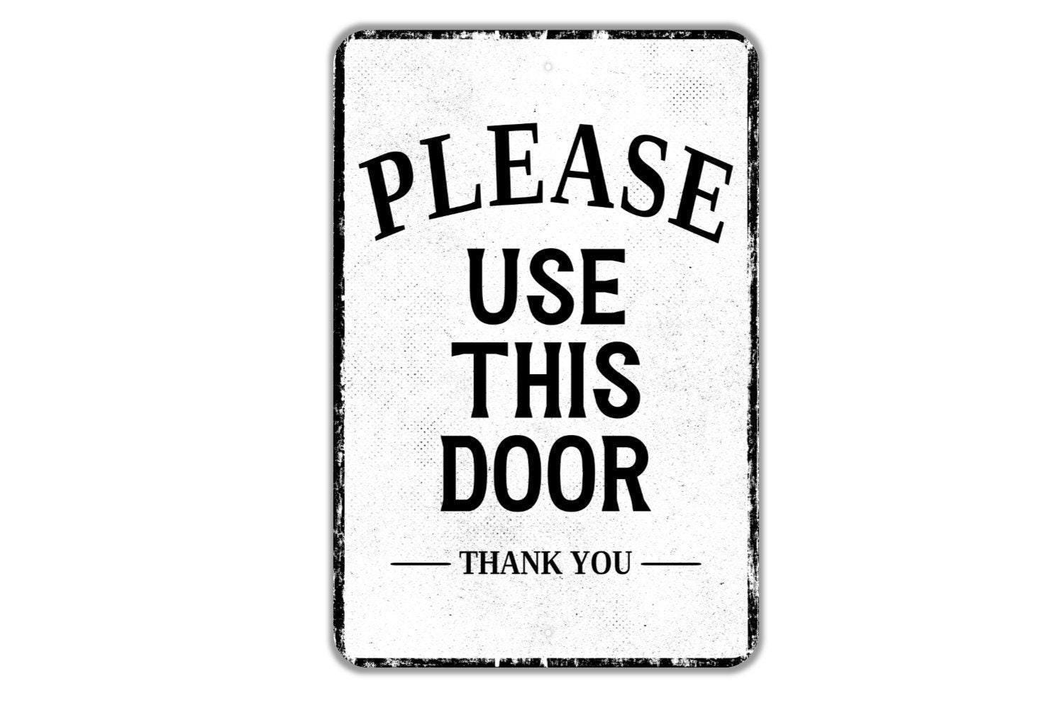 Please Use This Door Thank You Sign | Entryway Direction Metal Sign or Vinyl Sticker | Business, Office, Shop, Restaurant, Storefront Decor