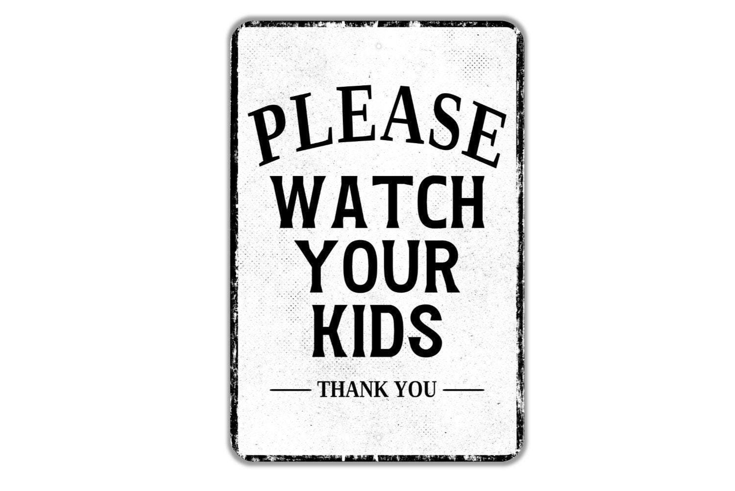 Please Watch Your Kids Thank You Sign Metal Wall Art or Vinyl Sticker for Business, Store, Pool, Playground, School, Daycare, Safety Notice
