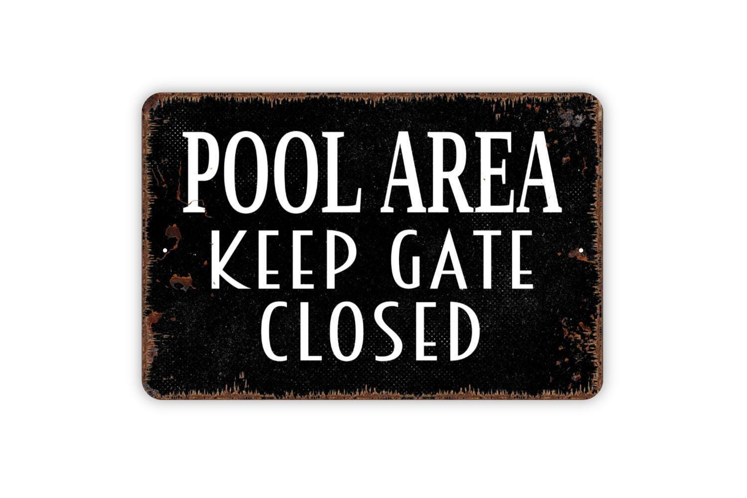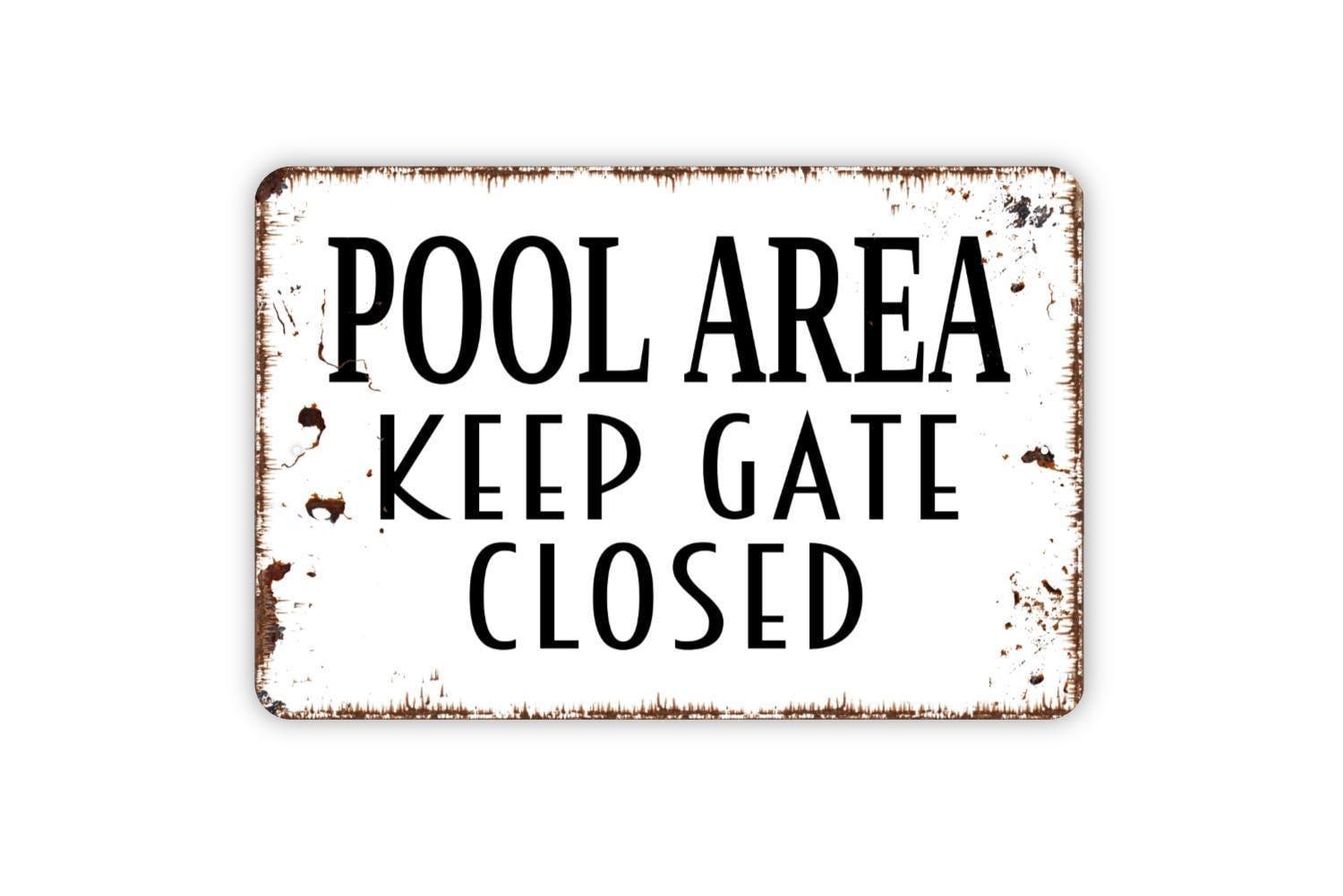Pool Area Keep Gate Closed Sign - Metal Swimming Pool Wall Art - Indoor or Outdoor