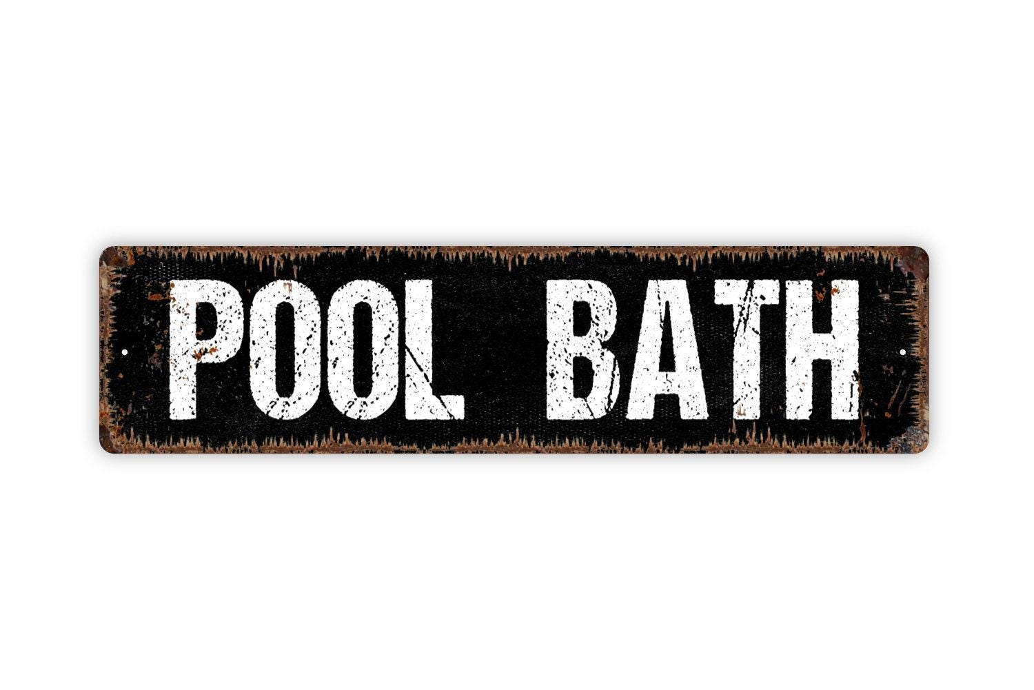 Pool Bath Sign - Swimming Pool Bathroom Restroom Dressing Room Backyard Patio Vinyl Sticker Or Street Metal Sign or Door Name Plate Plaque