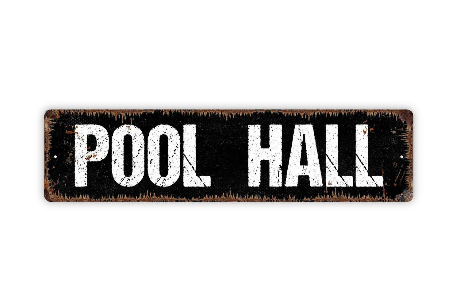 Pool Hall Sign - Pool Table Que Darts Billiards Bar Pub Tavern Vinyl Sticker Or Street Metal Sign or Door Name Plate Plaque