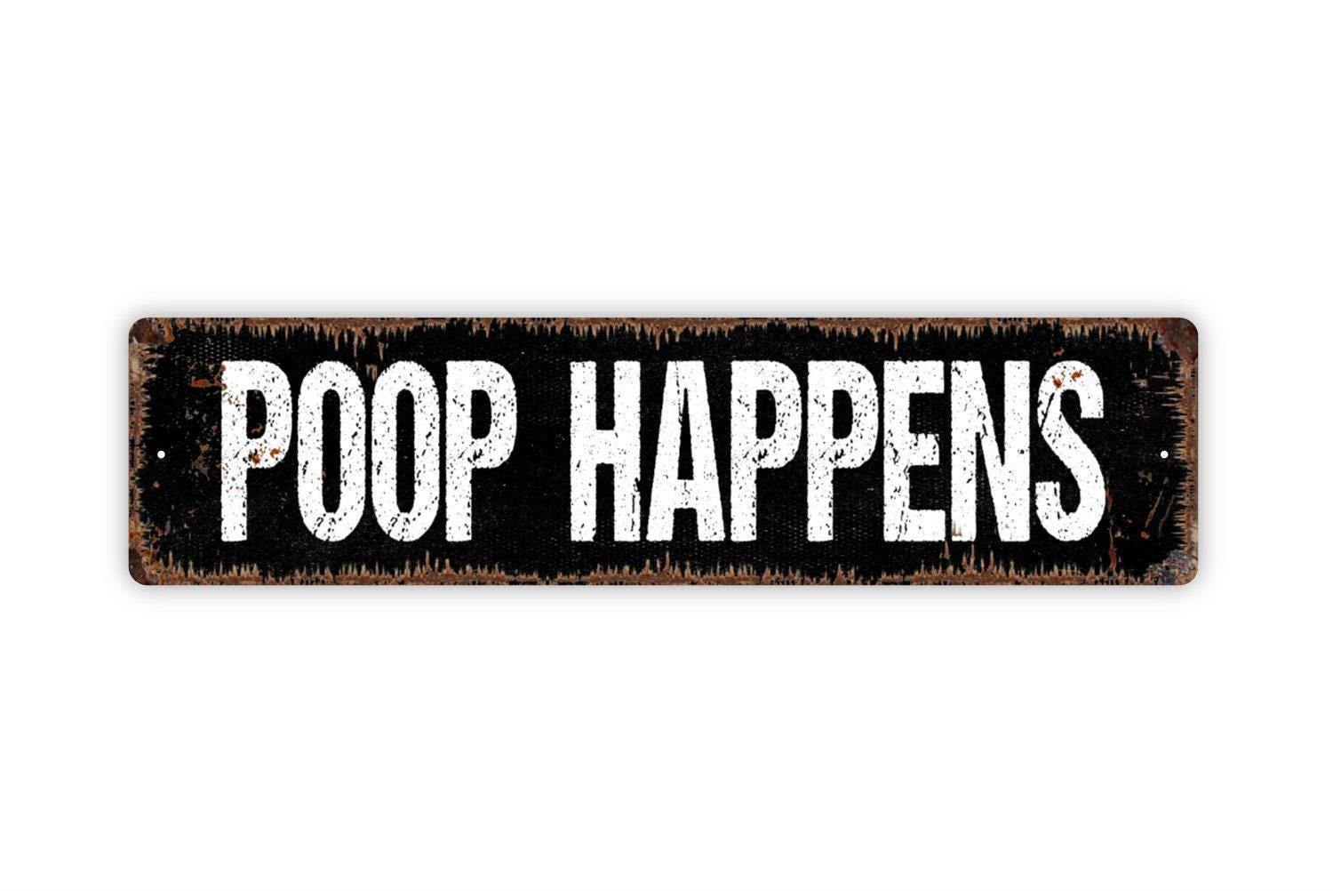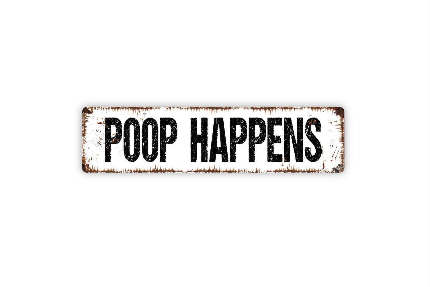 Poop Happens Sign - Bathroom Vinyl Sticker Or Metal Street Sign or Door Name Plate Plaque