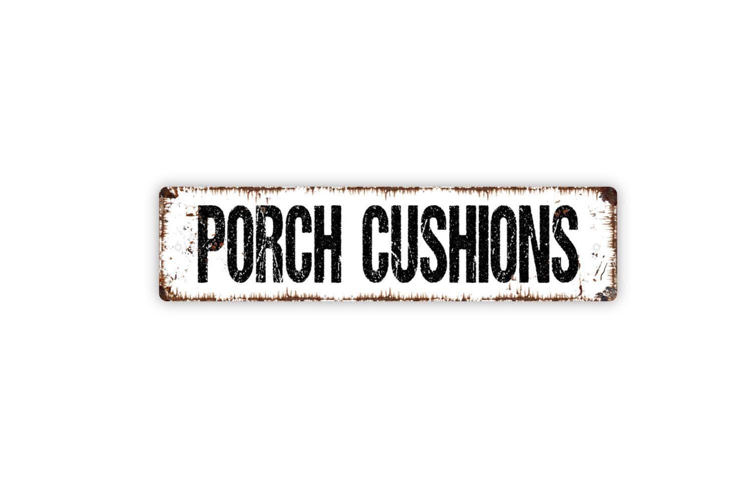 Porch Cushions Sign – Outdoor Patio Reminder Sign, Weather Warning or Storage Cue, Vinyl Sticker Or Metal Porch or Deck Wall Sign