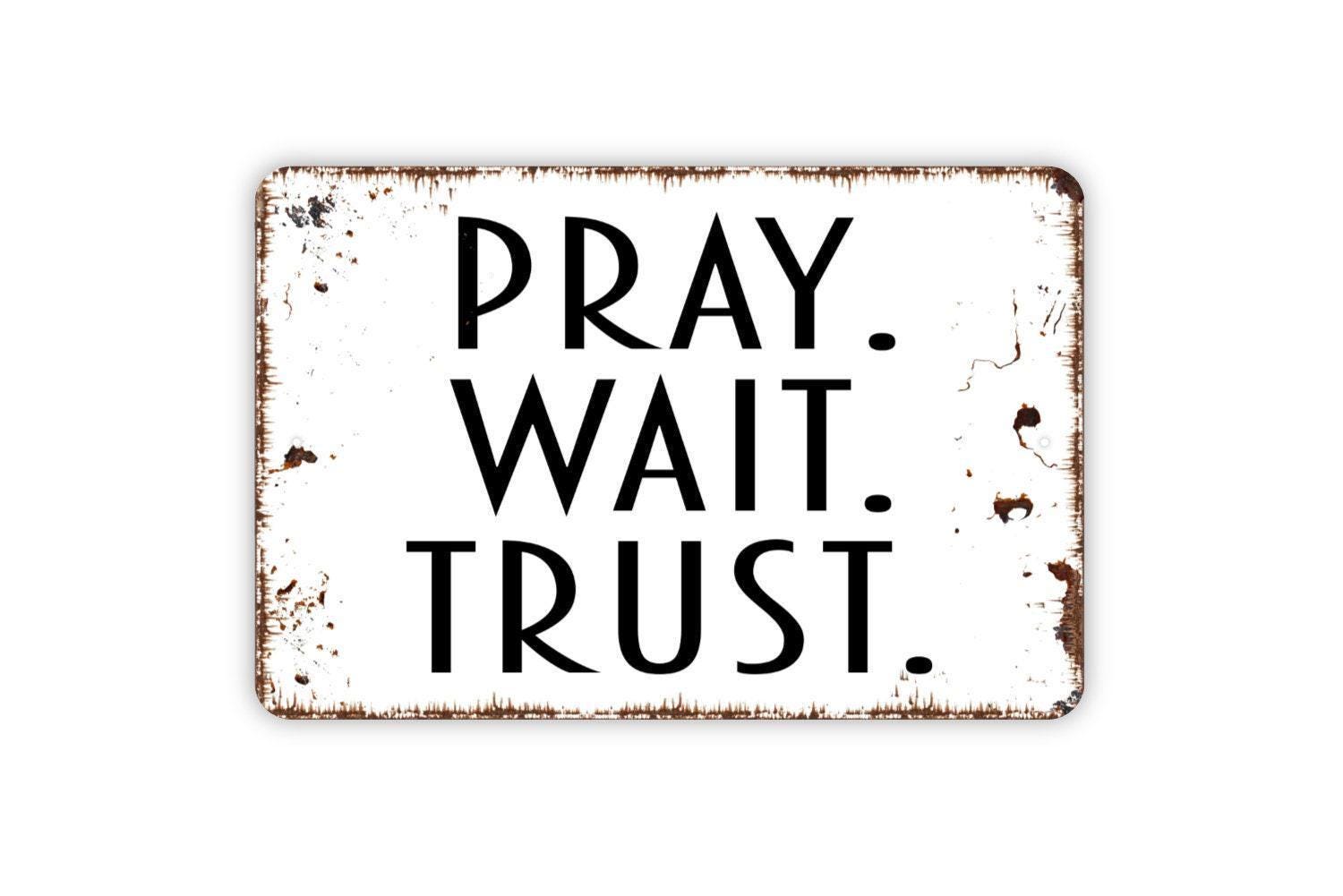 Pray Wait Trust Sign | Christian Bible Verse Faith Decor | Metal Sign or Vinyl Sticker for Home Church Office Prayer Room
