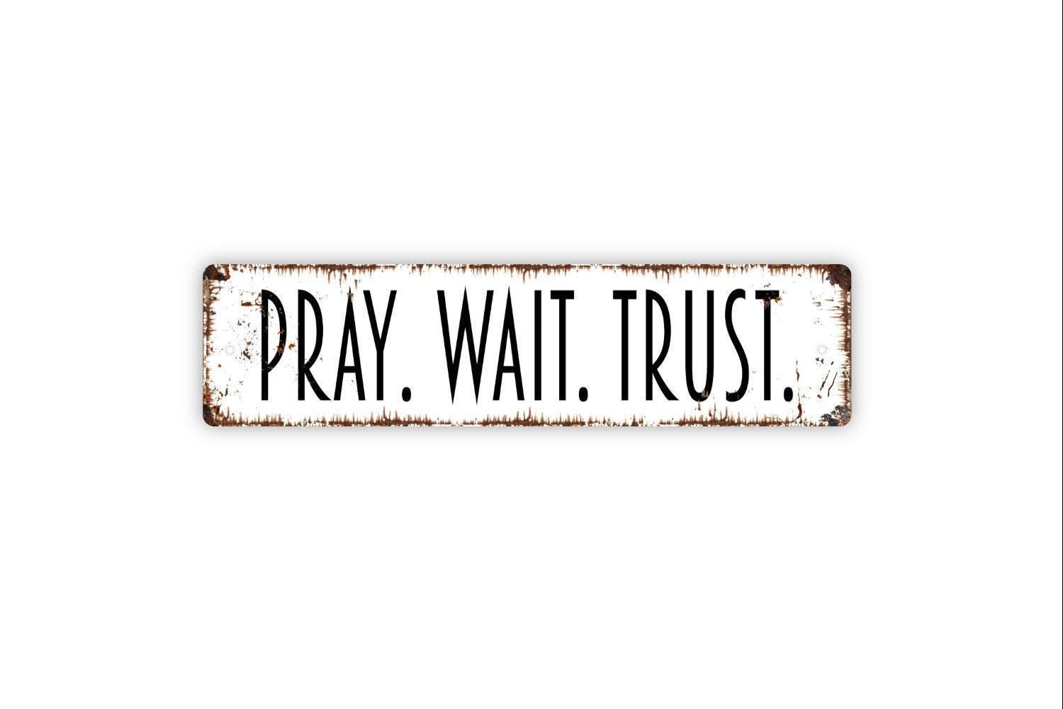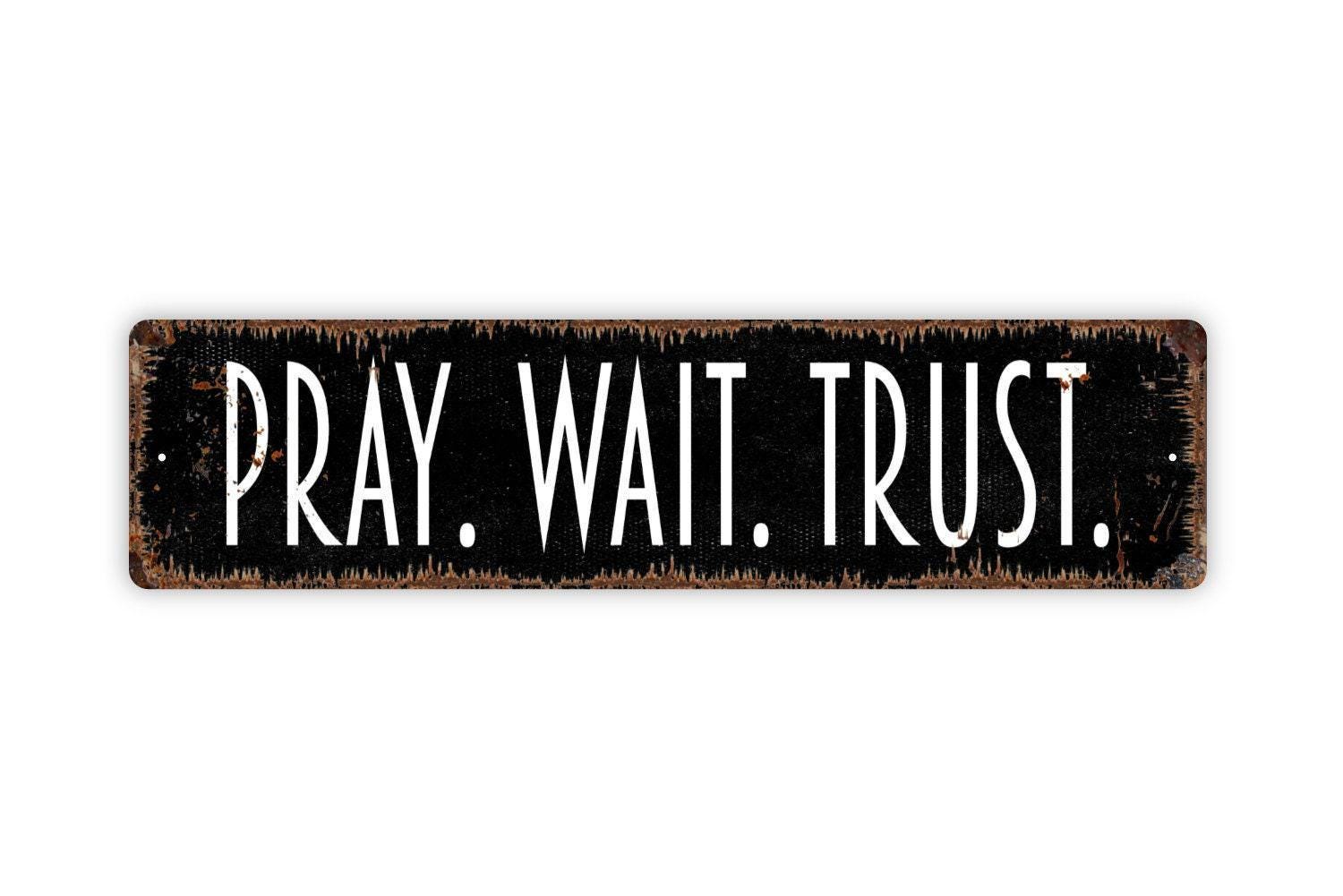 Pray Wait Trust Sign - Vinyl Sticker Or Metal Street Sign or Door Name Plate Plaque