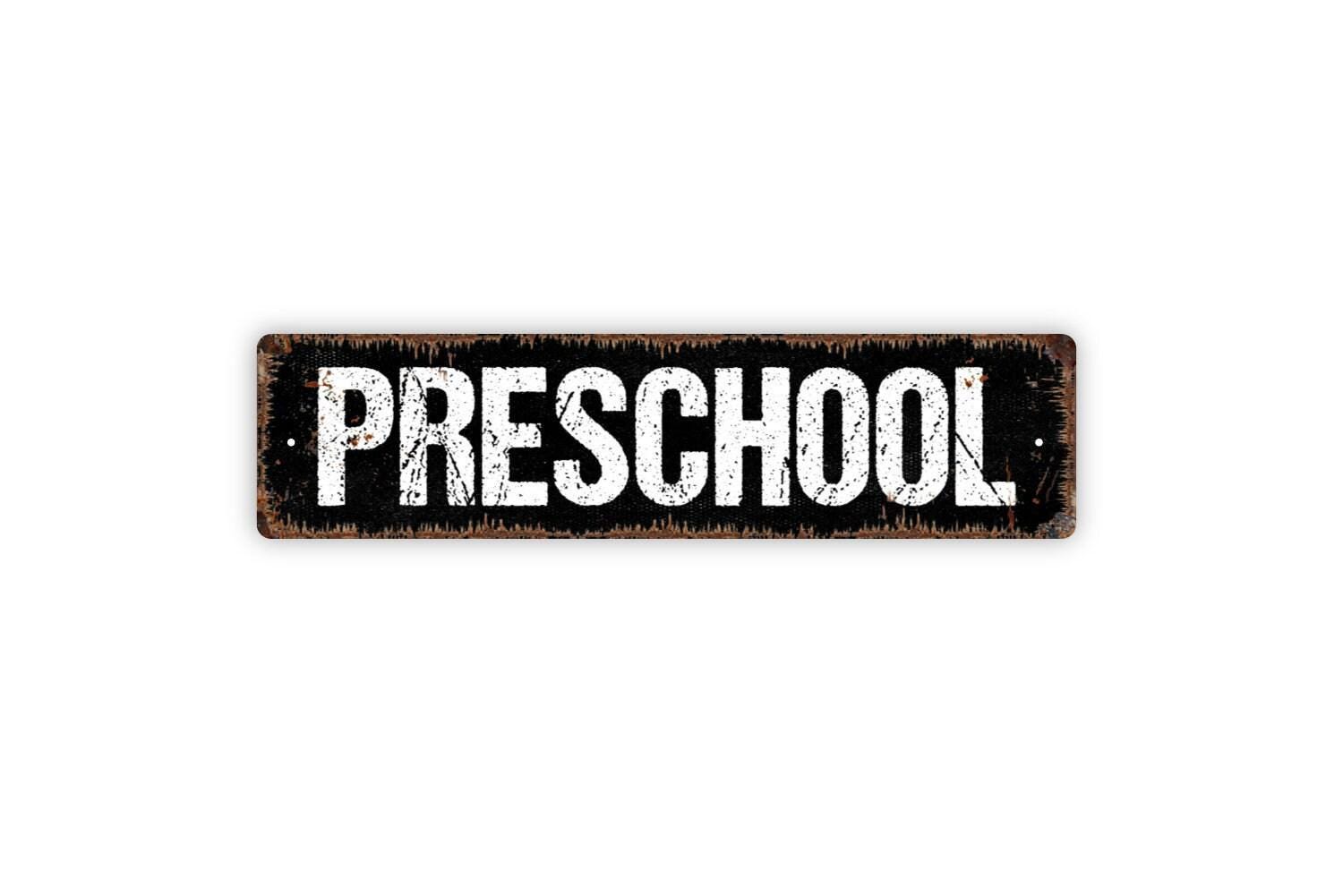 Preschool Sign | Rustic Classroom or Daycare Wall Sign for Teachers, Playrooms, or Learning Centers | Metal Sign or Vinyl Sticker Décor
