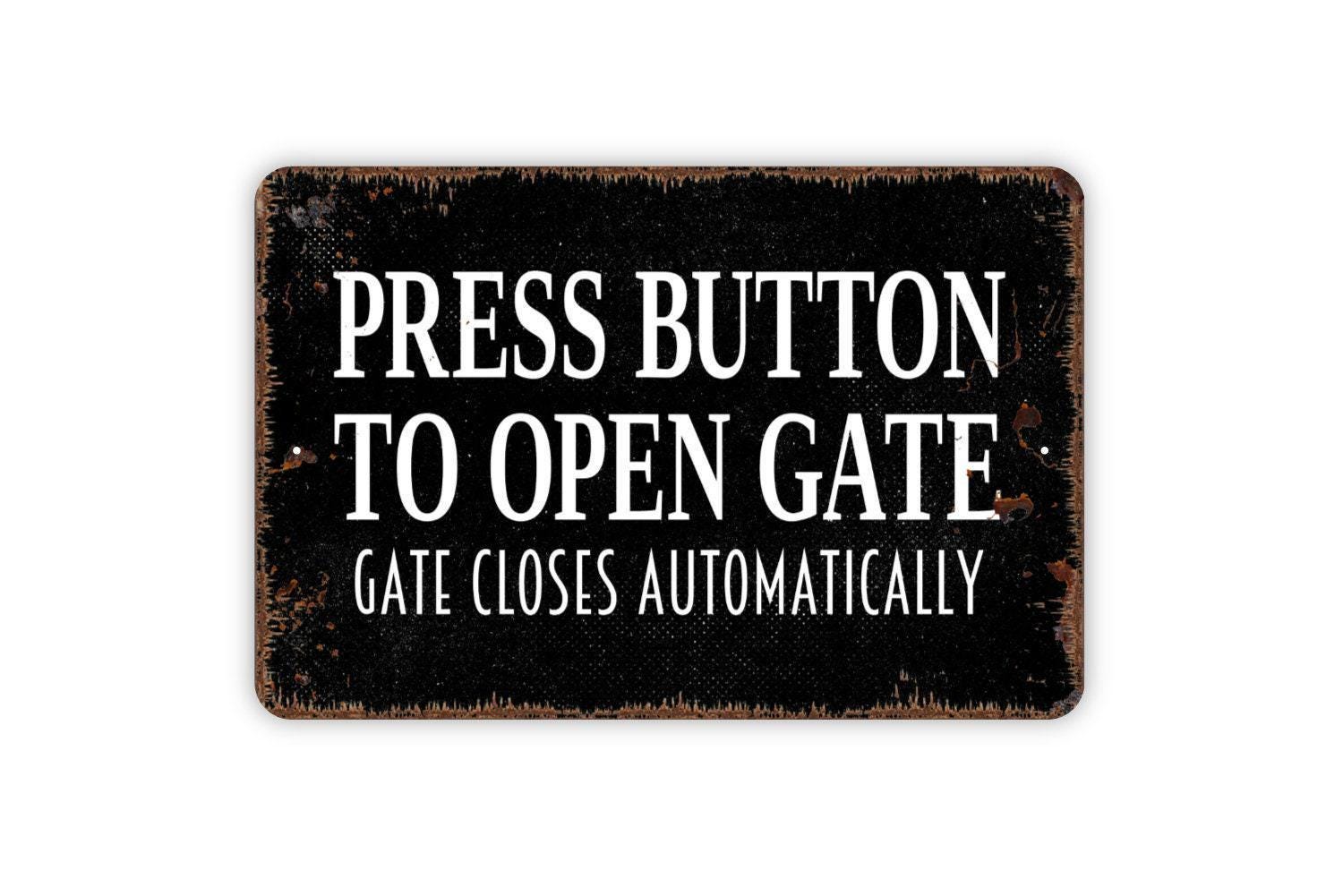 Press Button To Open Gate Gate Closes Automatically Sign - Entrance Drive Fence Metal Wall Art Indoor Or Outdoor