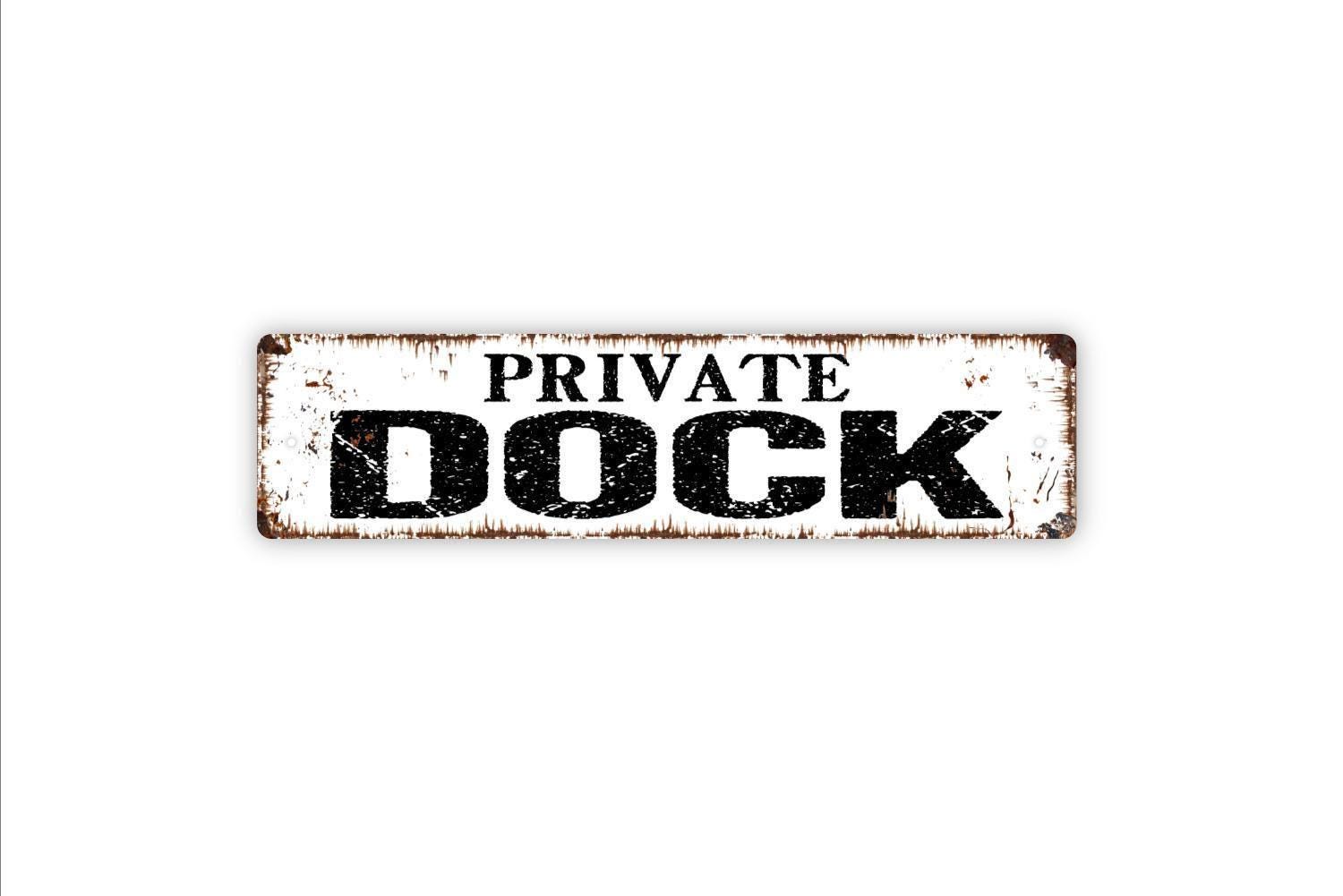Private Dock Two Line Text Sign - No Trespassing Private Property Guests Owners Only Rustic Street Metal Sign or Door Name Plate Plaque