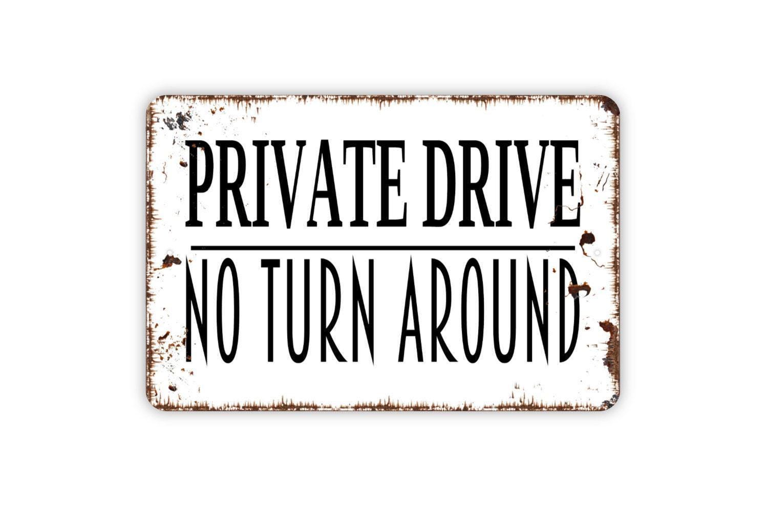 Private Drive No Turn Around Metal Sign - No Trespassing Private Property Entrance No Thru Street Wall Art Outdoor Or Indoor Metal Sign