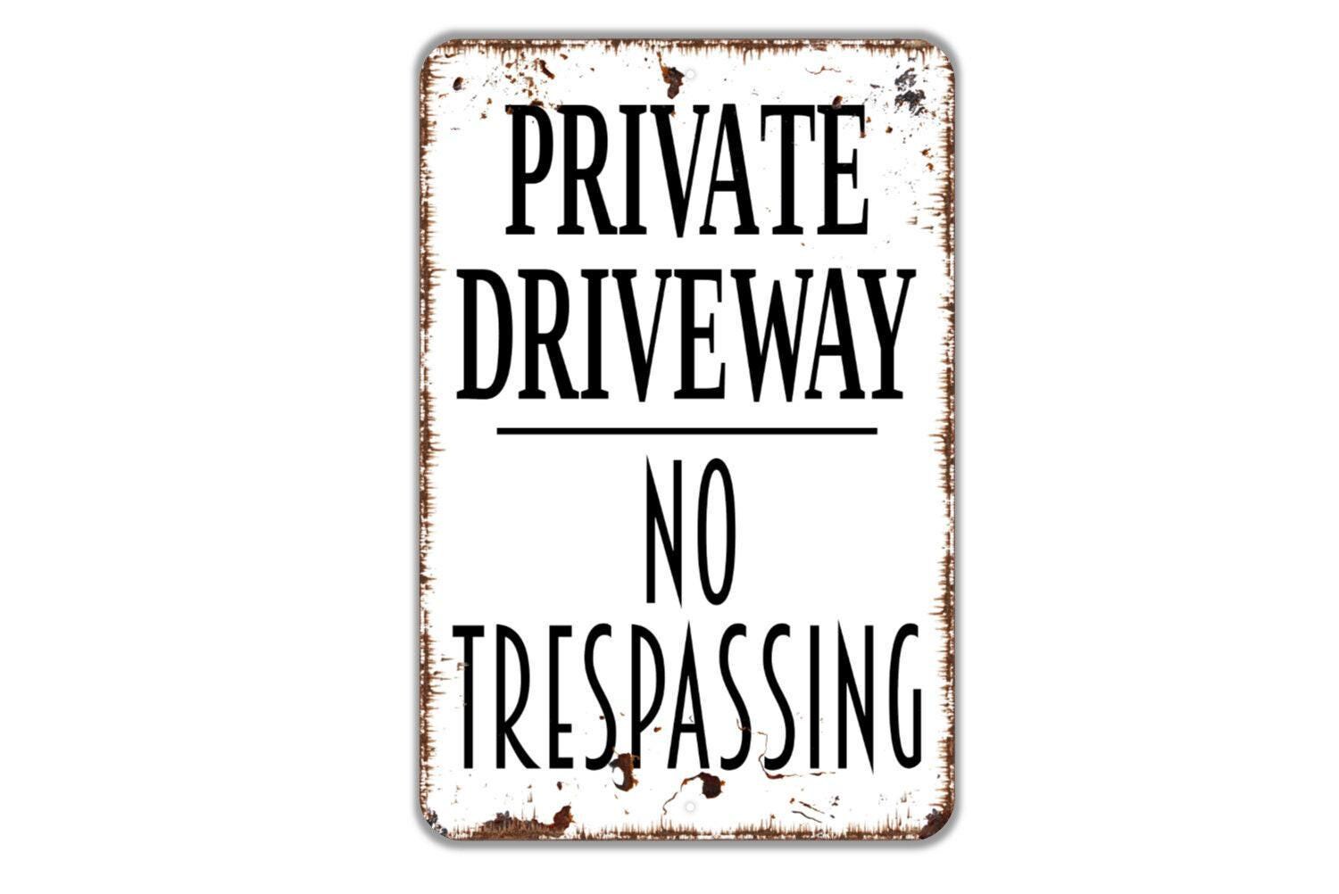 Private Driveway No Trespassing Sign - Vertical Metal Art
