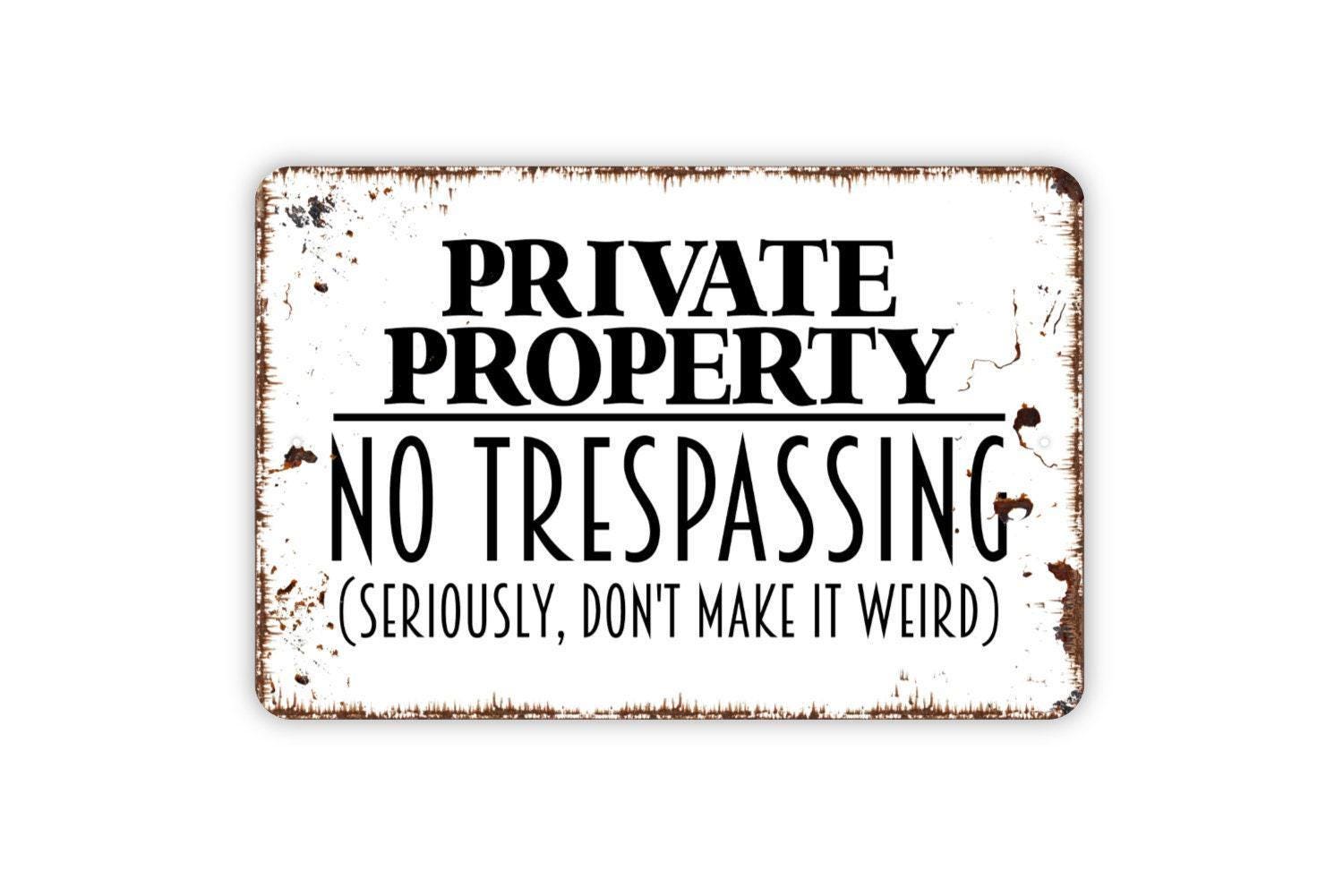 Private Property No Trespassing Seriously Don't Make It Weird Sign - Outdoor Or Indoor Metal Wall Art