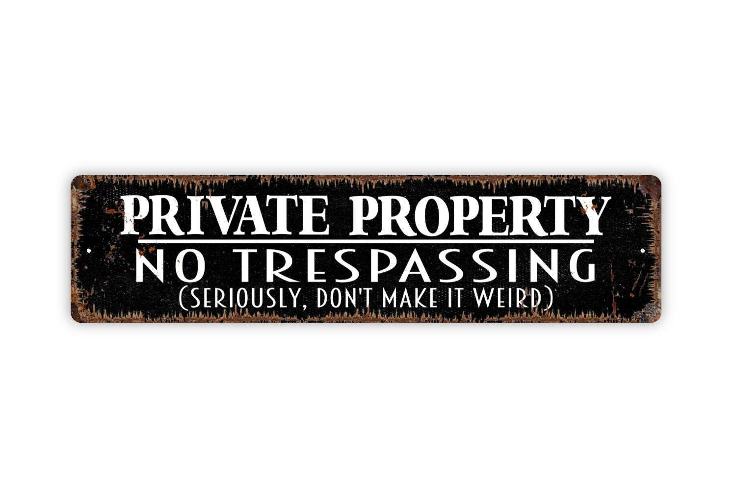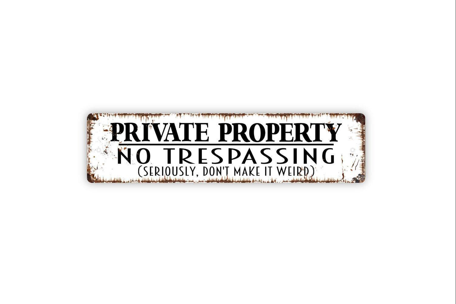 Private Property No Trespassing Seriously Don't Make It Weird Sign - Vinyl Sticker Or Metal Street Sign or Door Name Plate Plaque