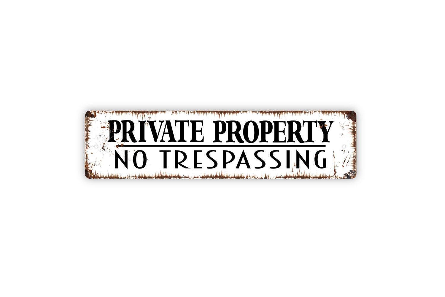 Private Property No Trespassing Sign – Rustic Farmhouse Property Safety Warning – Home Yard Fence Gate Wall Notice – Metal Sign or Sticker