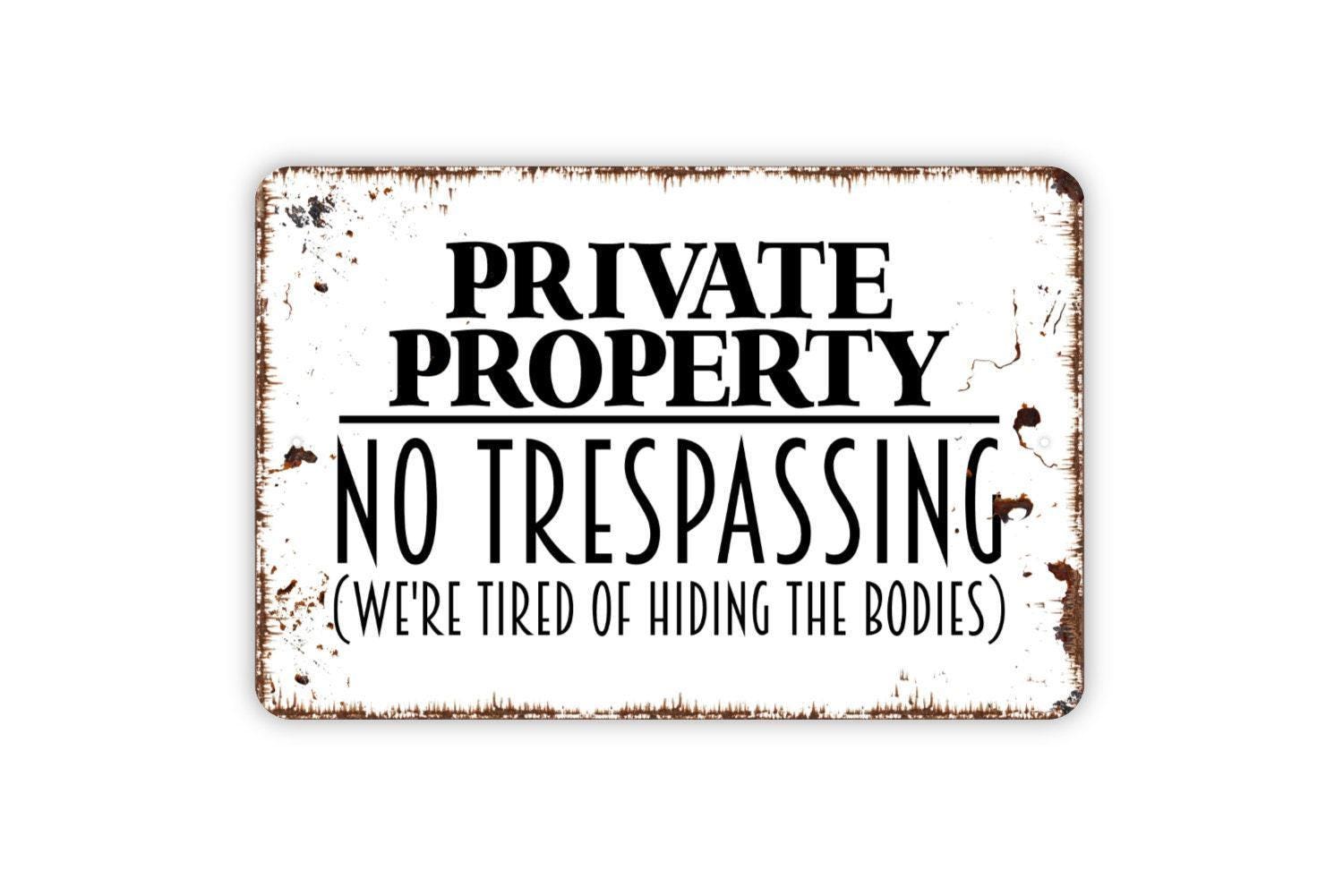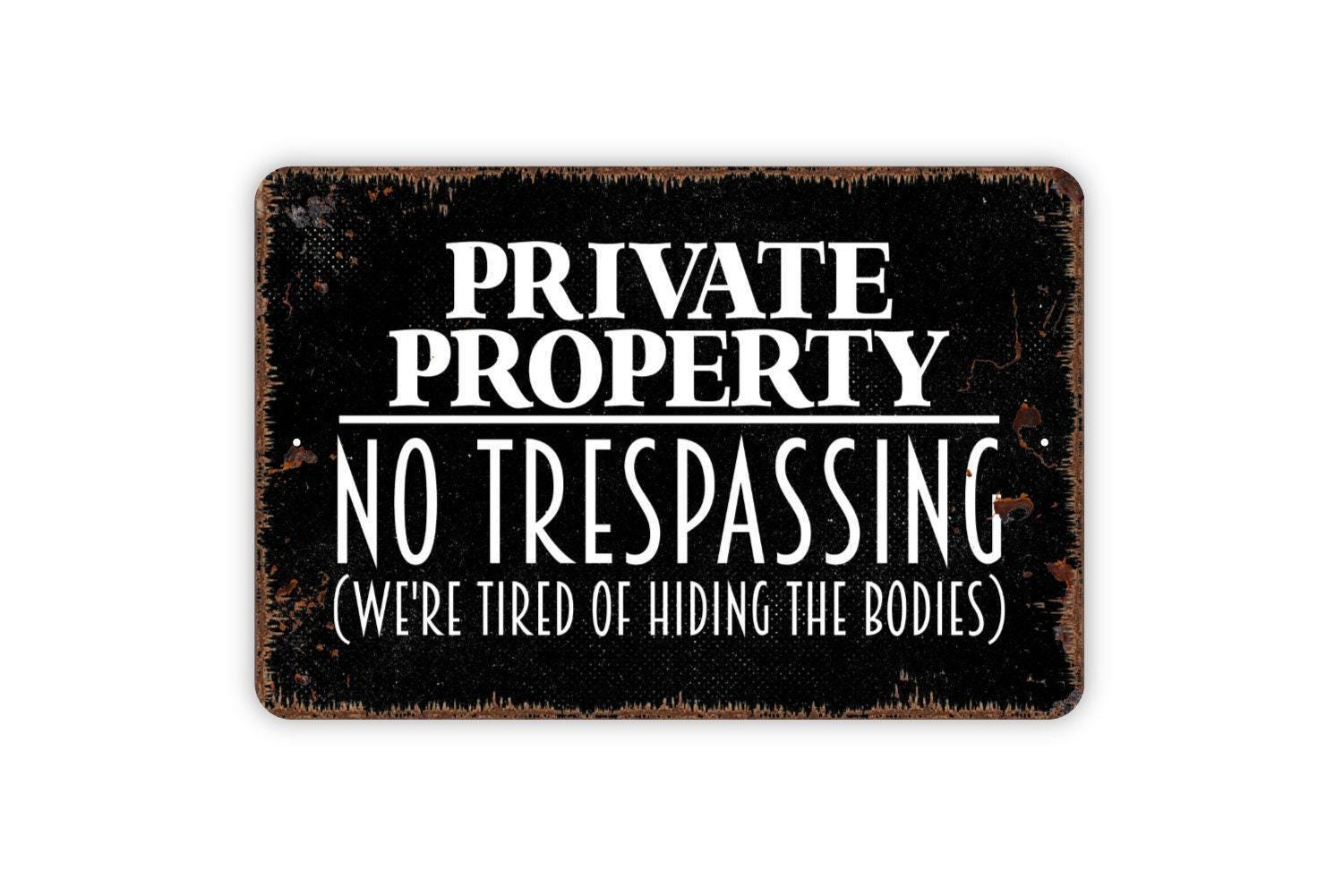 Private Property No Trespassing We’re Tired of Hiding the Bodies Sign | Funny Security Wall Decor | Metal Sign or Vinyl Sticker