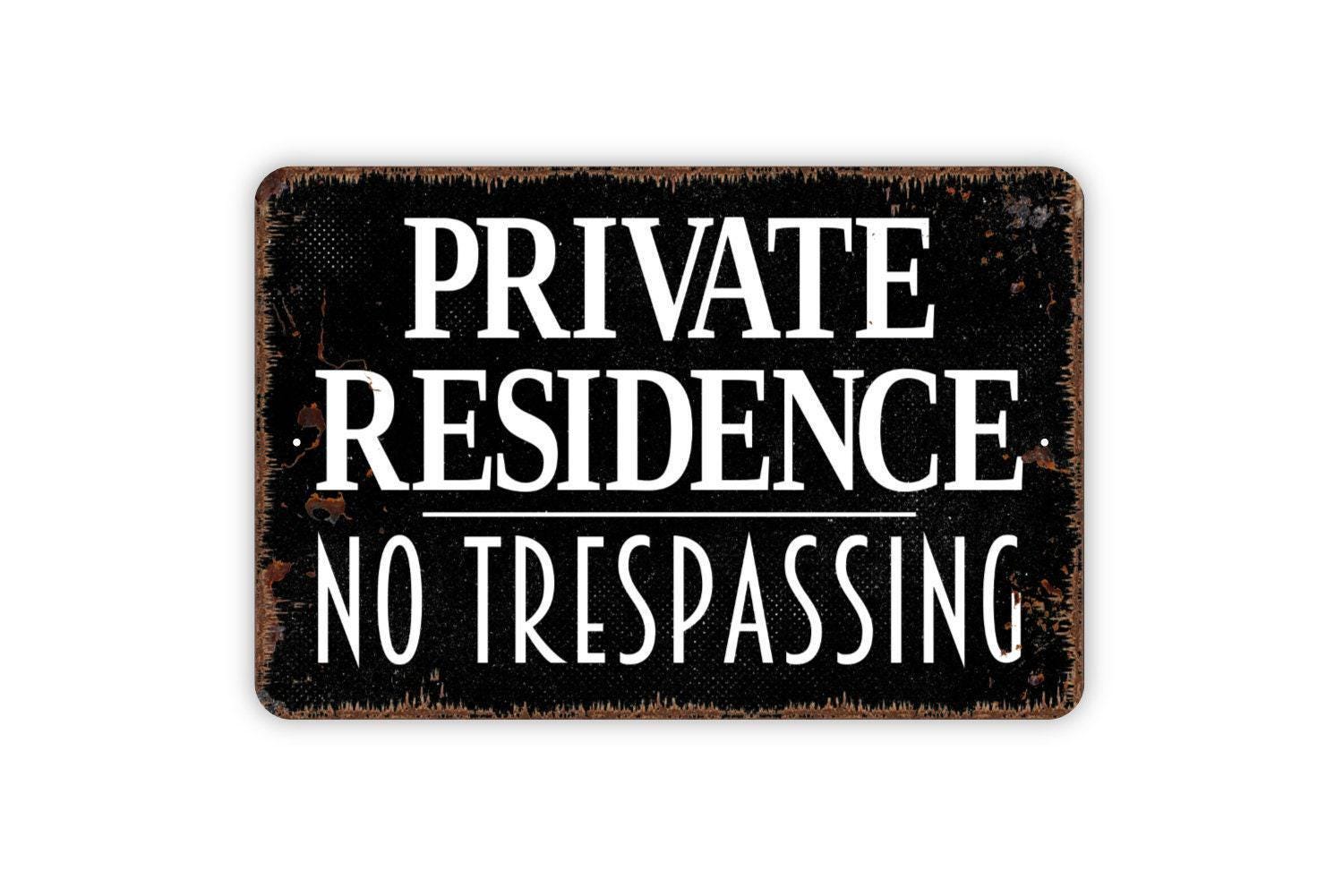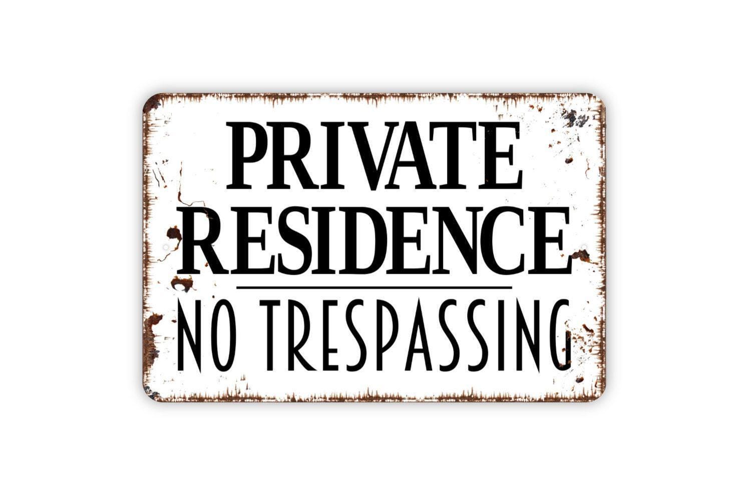 Private Residence No Trespassing Sign | Security Warning Wall Sign | Metal Sign or Vinyl Sticker for Home, Yard, Driveway, or Gate