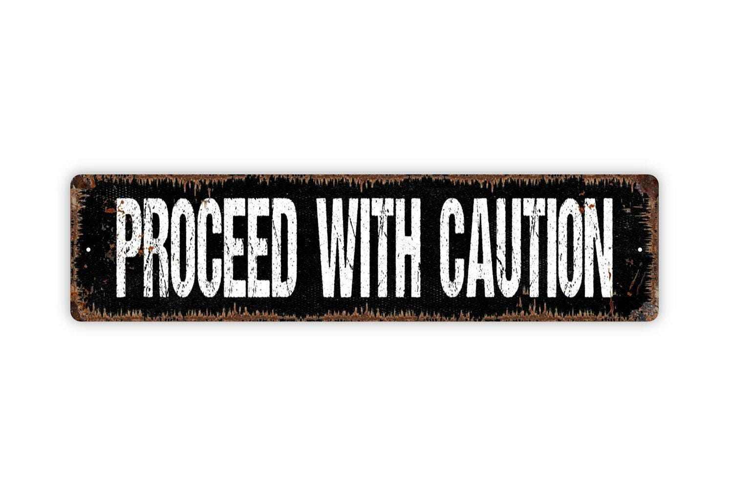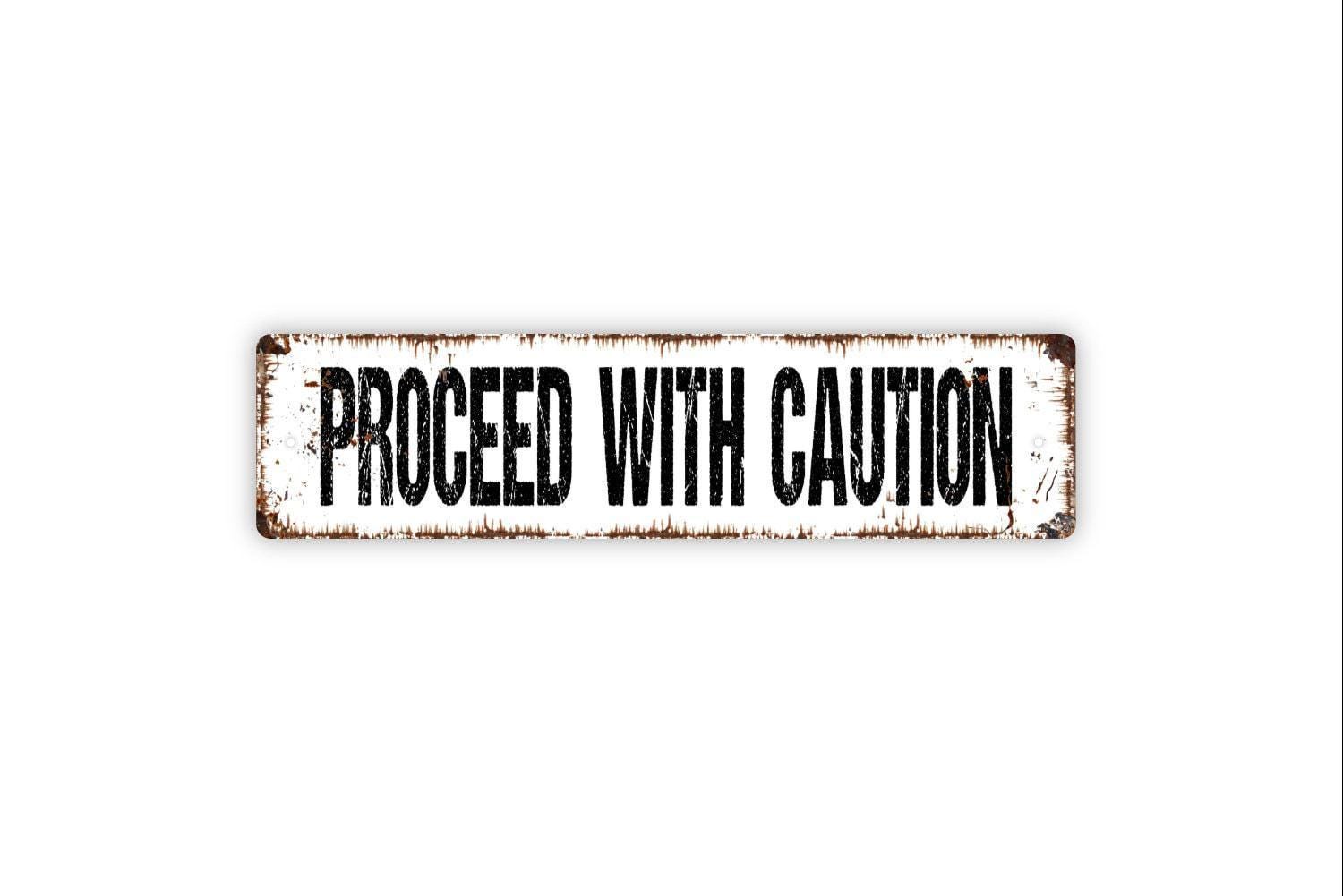 Proceed With Caution Sign - Beware Warning Careful Danger Vinyl Sticker Or Street Metal Sign or Door Name Plate Plaque