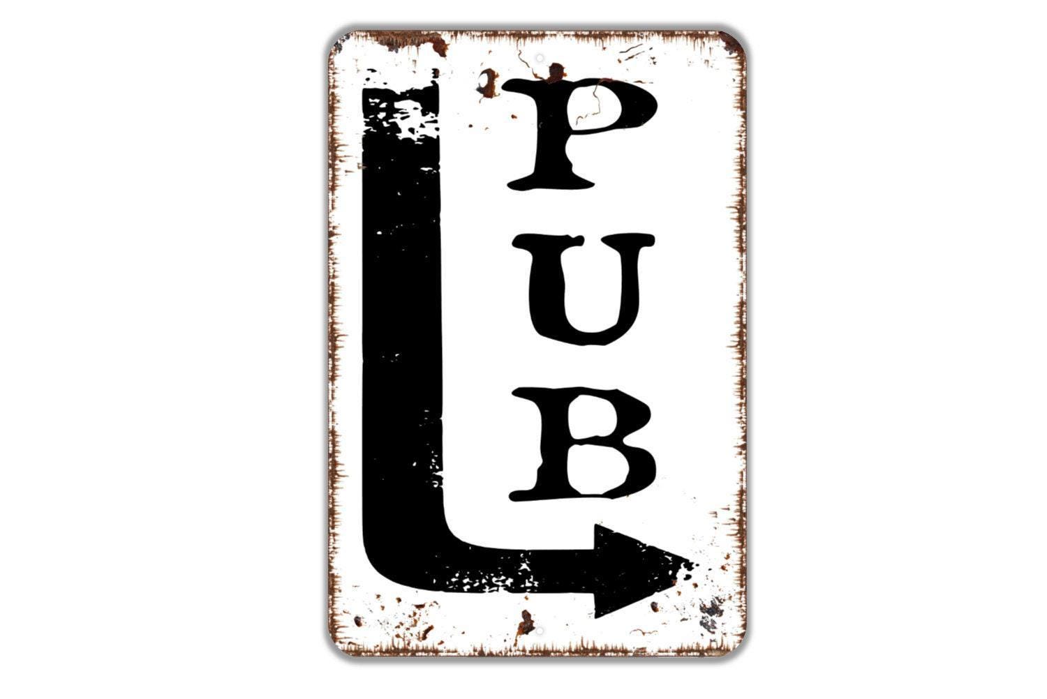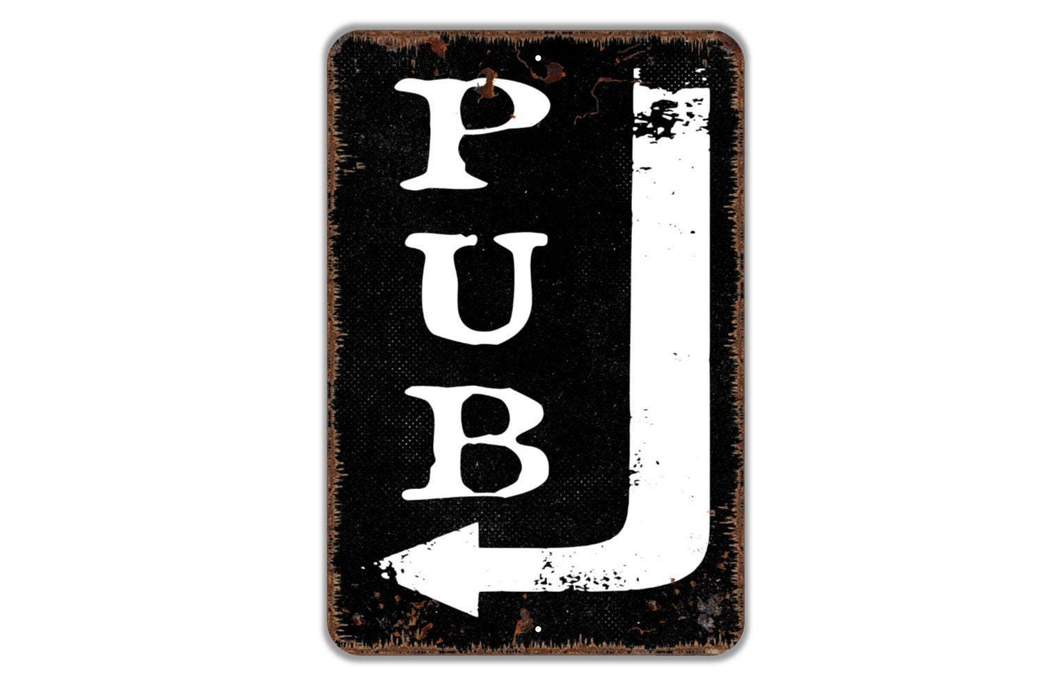 Pub Sign with Arrow – Rustic Bar Pub Tavern Wall Decor – Funny Man Cave Game Room Drinking Sign – Metal Sign or Sticker