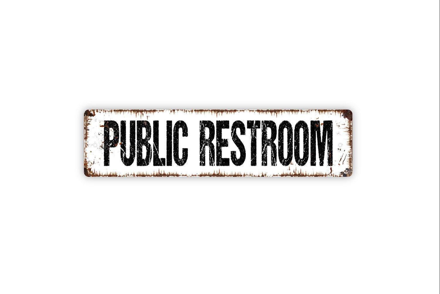 Public Restroom Sign - Bathroom Restroom Vinyl Sticker Or Metal Street Sign or Door Name Plate Plaque