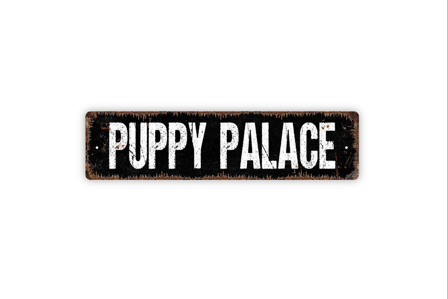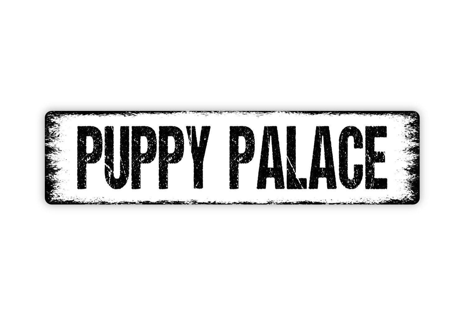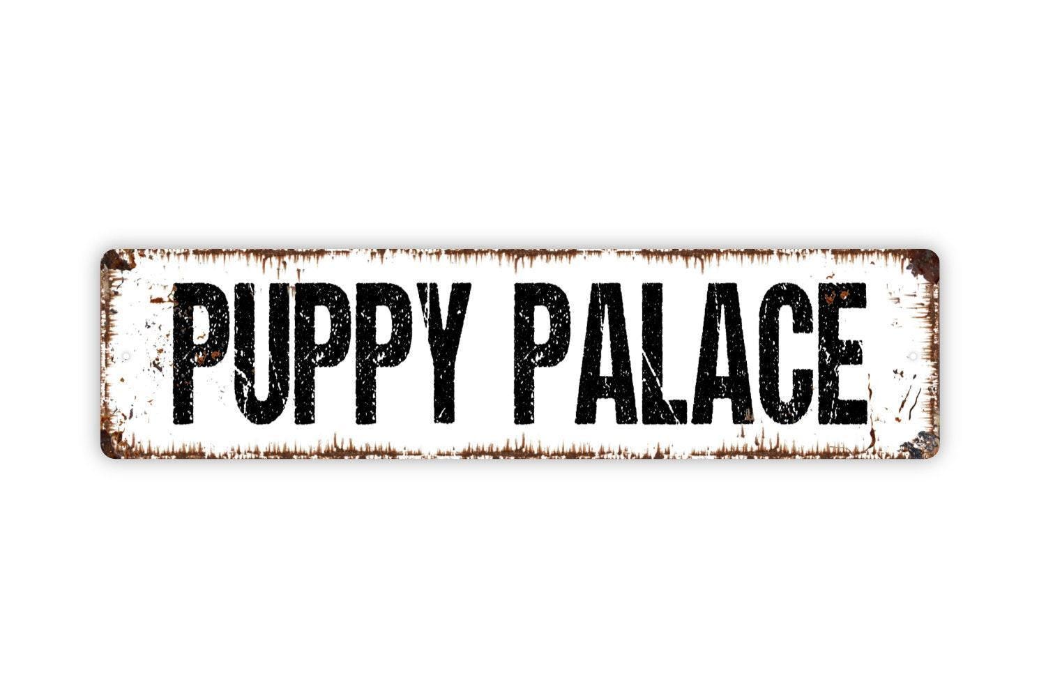 Puppy Palace Sign - Dog Doghouse Pup K9 Pet Lover Vinyl Sticker Or Street Metal Sign or Door Name Plate Plaque