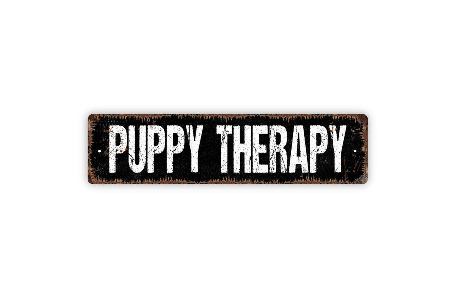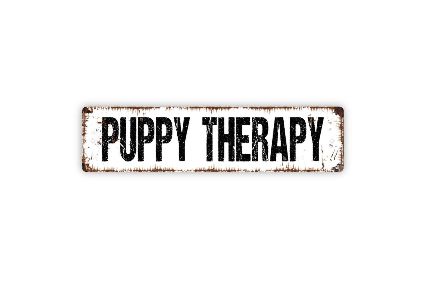 Puppy Therapy Sign - Dog Doggie Doggy Pup Vinyl Sticker Or Street Metal Sign or Door Name Plate Plaque
