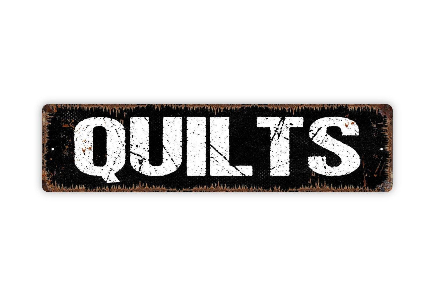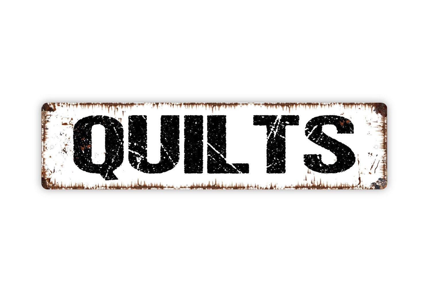 Quilts Sign | Rustic Farmhouse Sewing Room Decor | Metal Sign or Vinyl Sticker for Craft Room Quilt Shop Studio Home