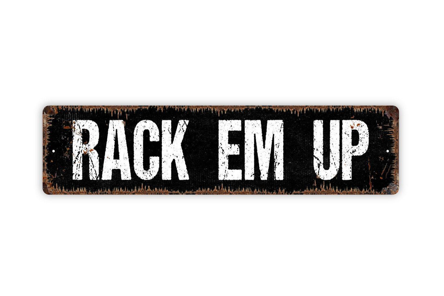 Rack Em Up Sign - Billiards Pool Hall Table Bar Pub Vinyl Sticker Or Street Metal Sign or Door Name Plate Plaque