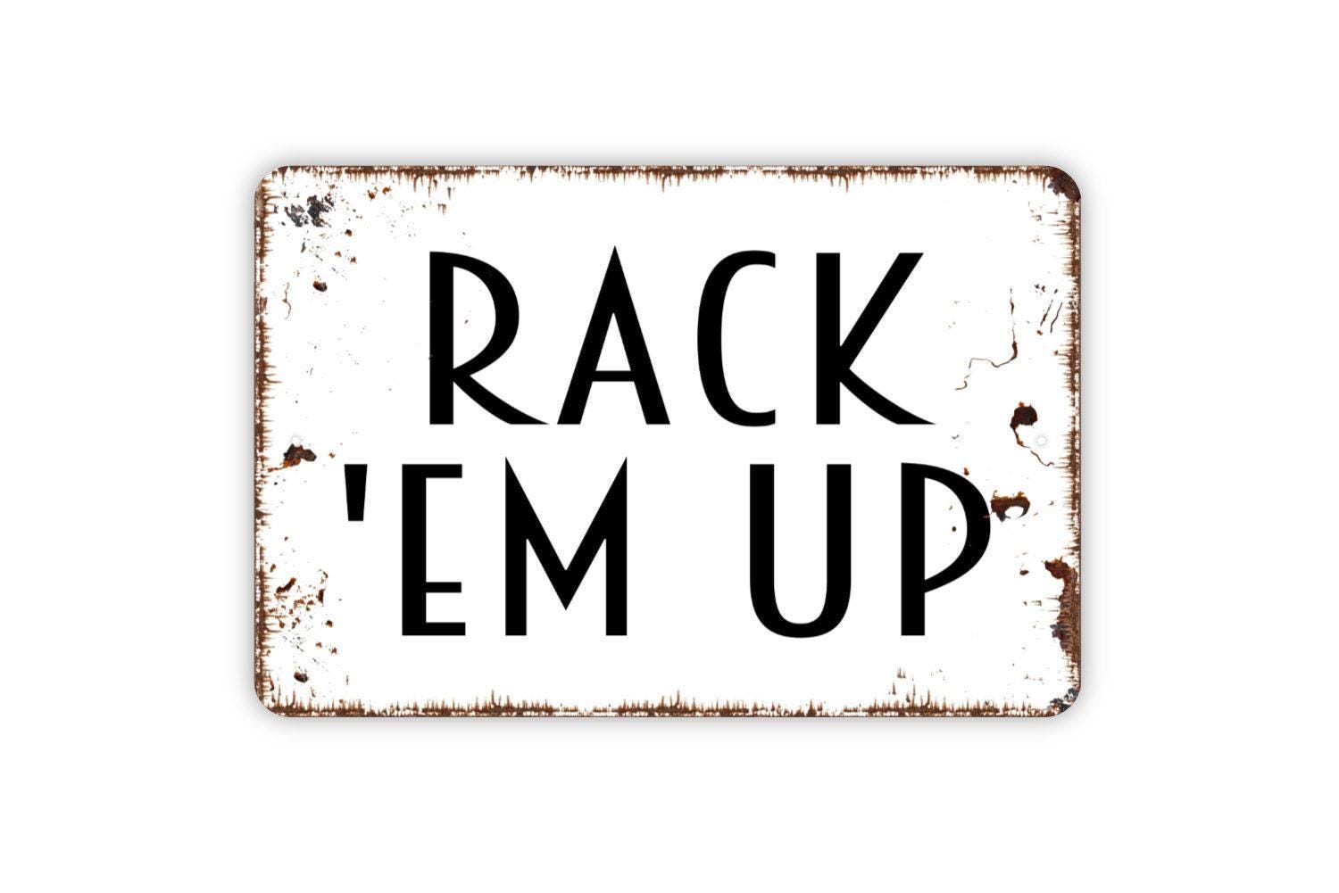 Rack ’Em Up Sign | Rustic Billiards Wall Decor | Pool Hall or Game Room Sign | Custom Metal Sign or Vinyl Sticker | Man Cave Bar Wall Art
