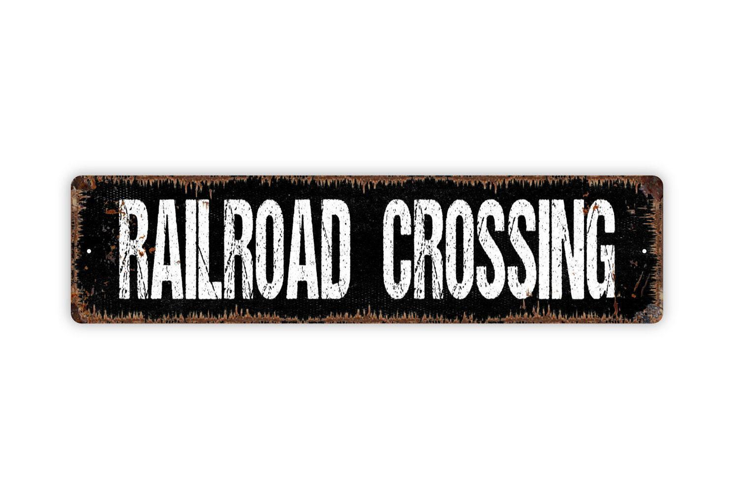 Railroad Crossing Sign - Train Station Locomotive Engineer Tracks Engine Caboose Rustic Street Metal Sign or Door Name Plate Plaque