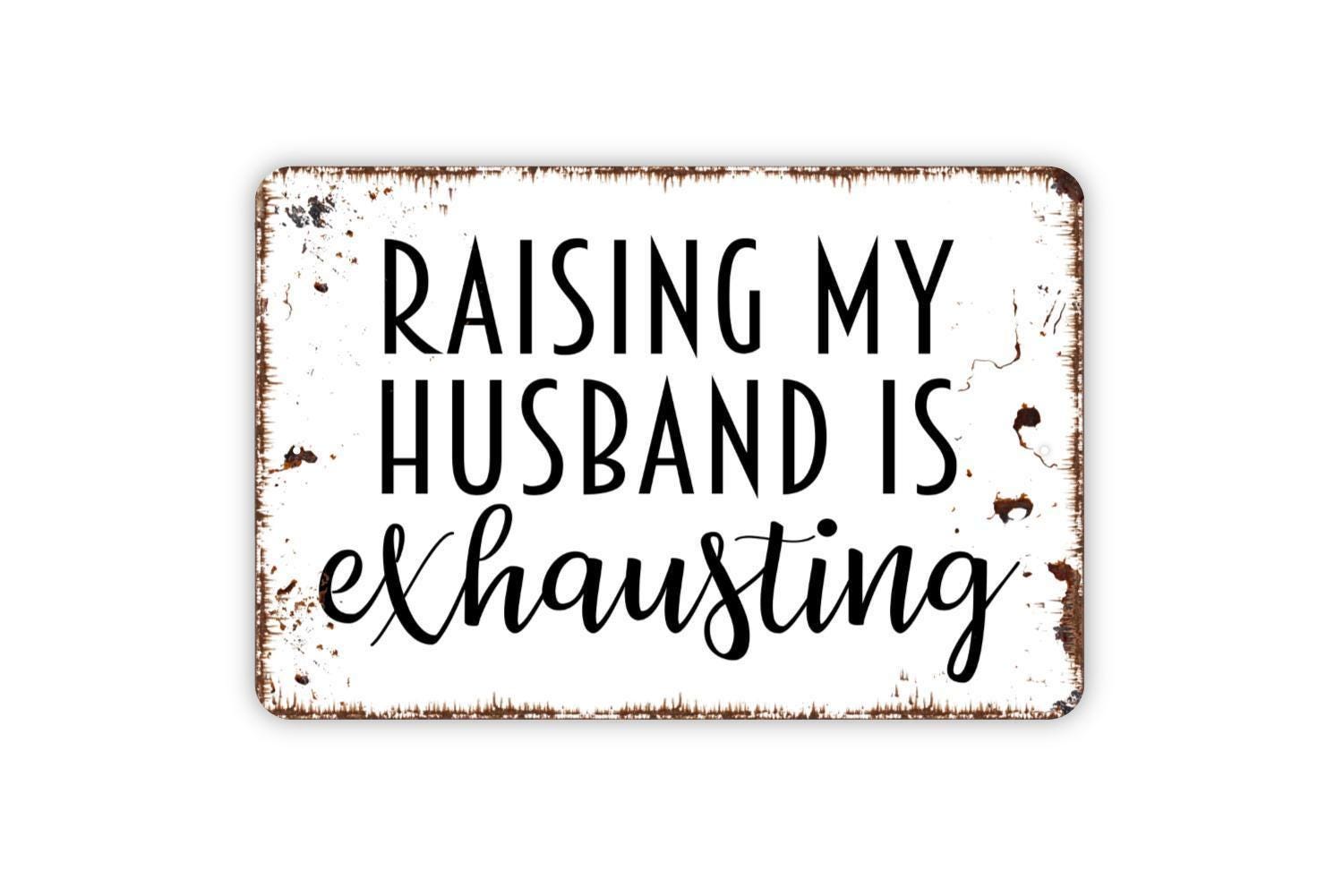 Raising My Husband Is Exhausting Sign - Funny Humor Metal Wall Art - Indoor or Outdoor